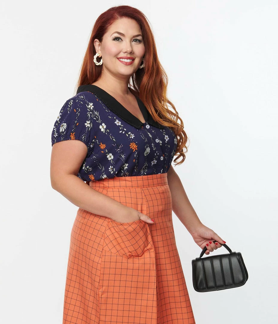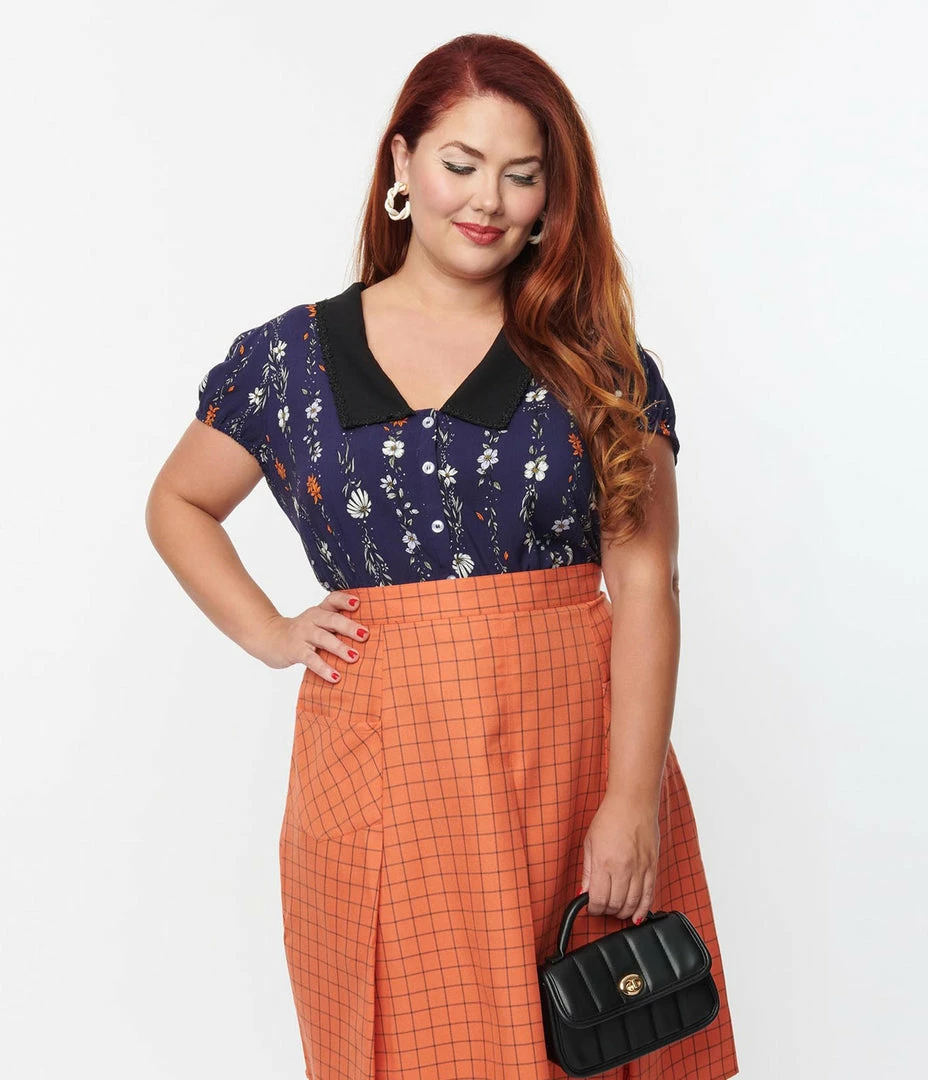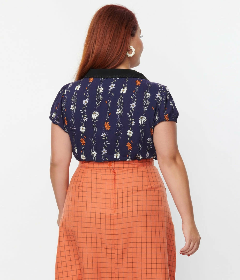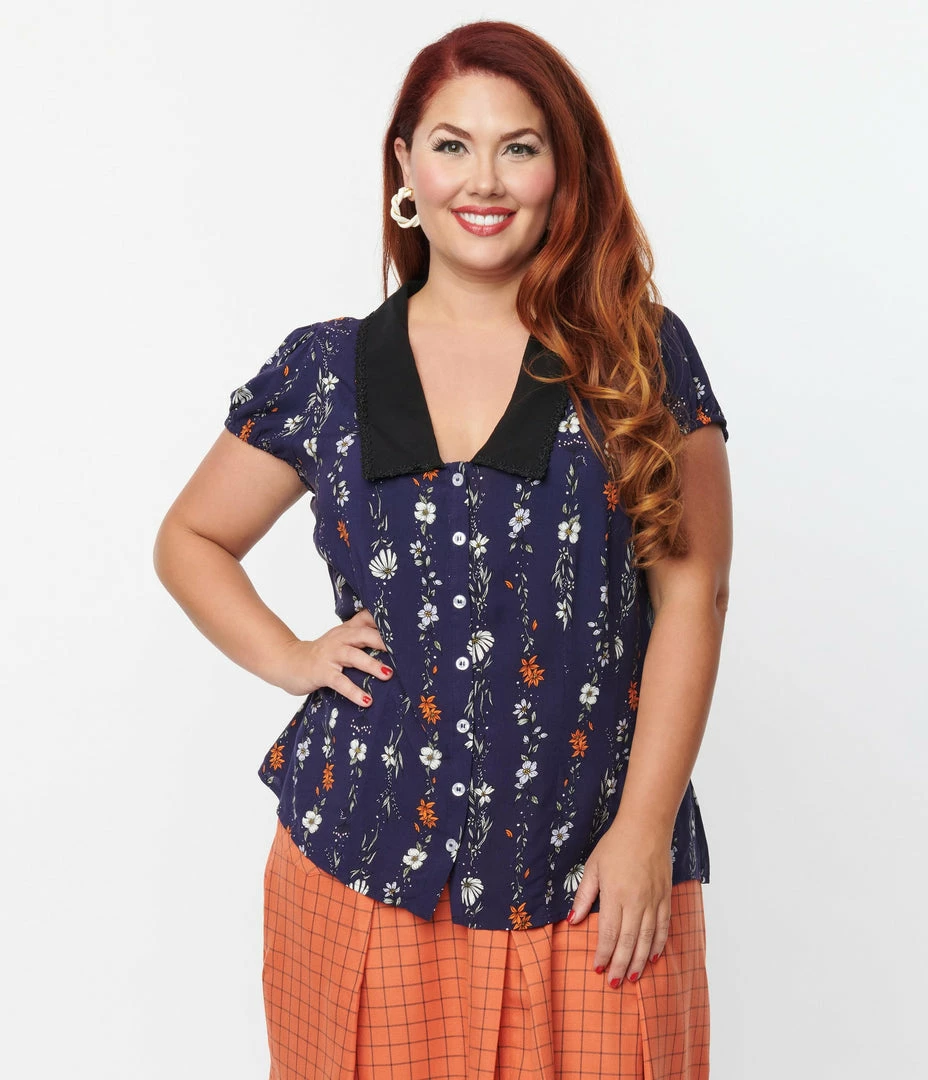 Discount ๐ Pop Soda Trending Hell Bunny Plus Size Navy Floral Print Asta Blouse ๐