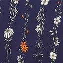 This darling plus size blouse is crafted in a lightweight woven fabric that dances with florals in shades of orange, white, and blue throughout the navy background. The button front leads to a solid black collar and is framed by short sleeves with elastic cuffs.