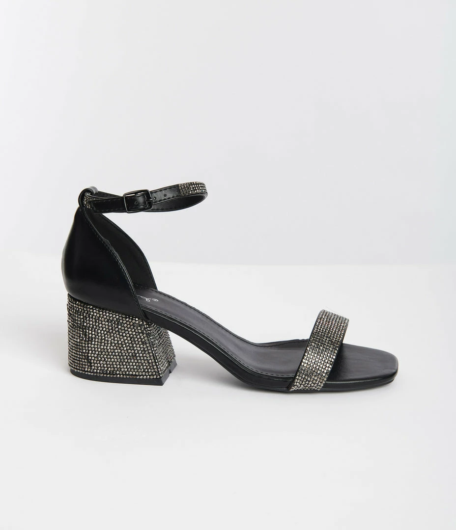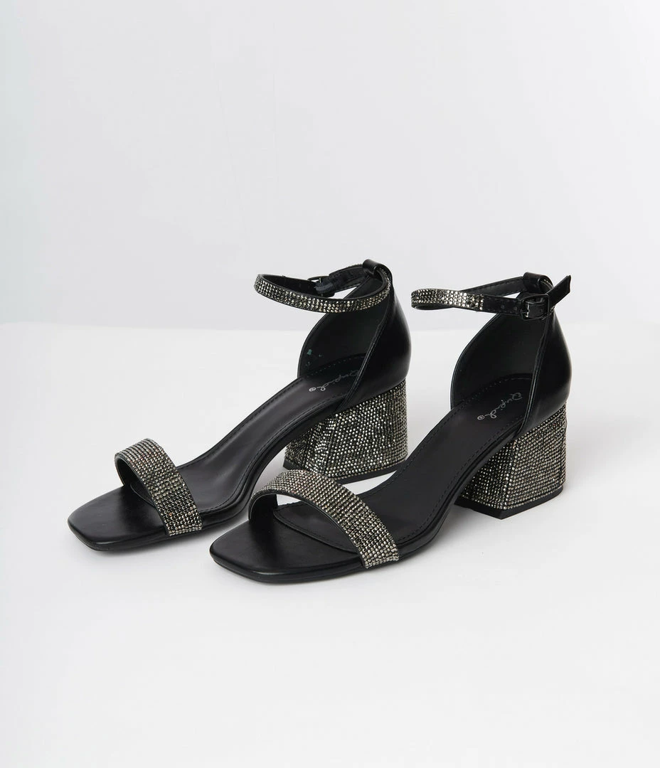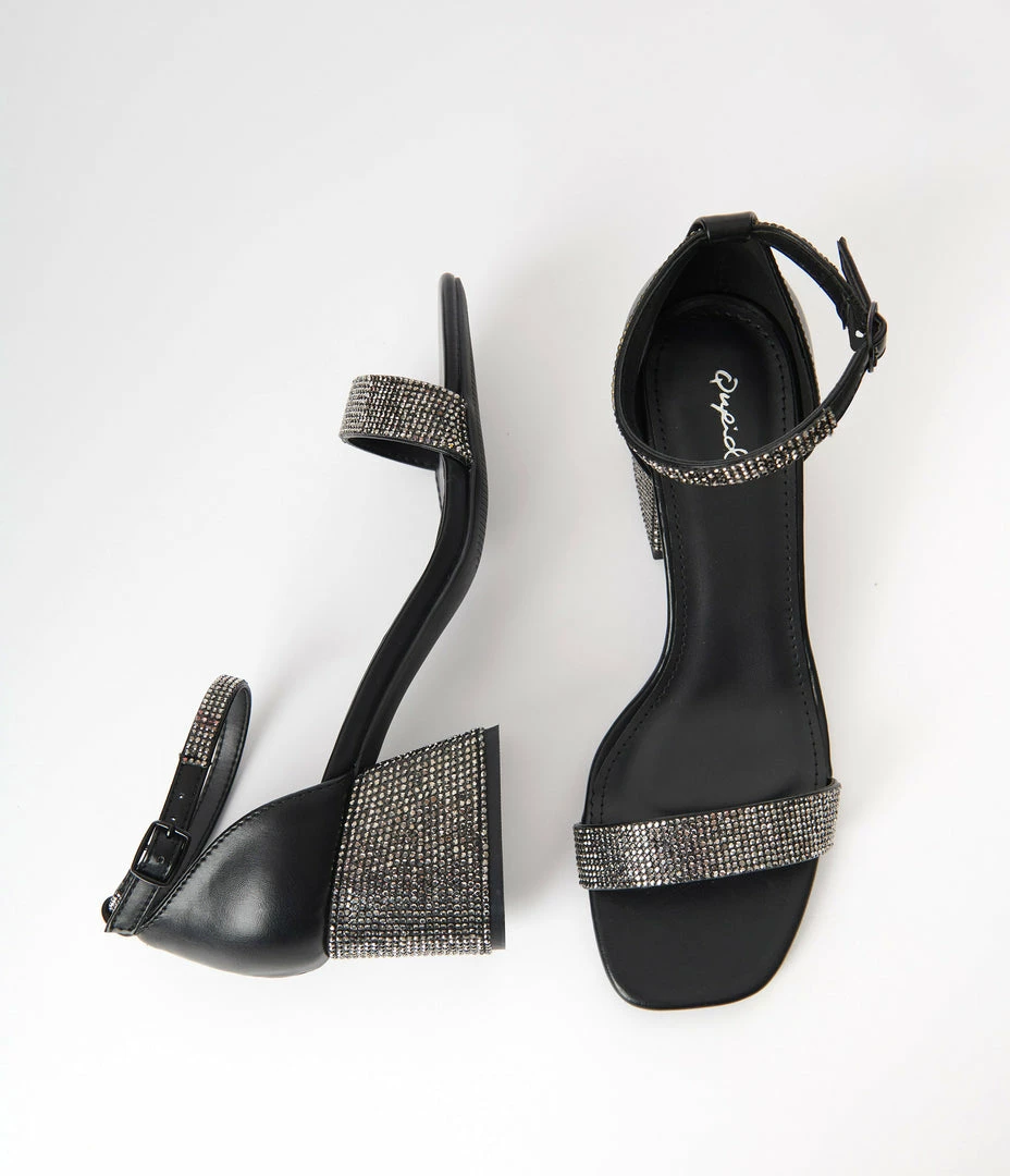 Brand new 🥰 Qupid Black Rhinestone Block Heel 🩴 Sandal 👠 Heels & Wedges ⌛