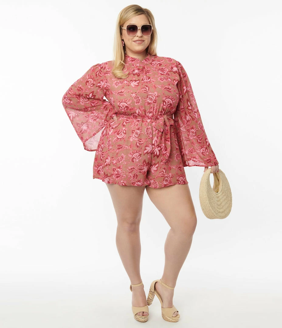 Buy ⭐ Rebel Love Plus Size Brown & Pink Floral Angel Sleeve Romper 🔥