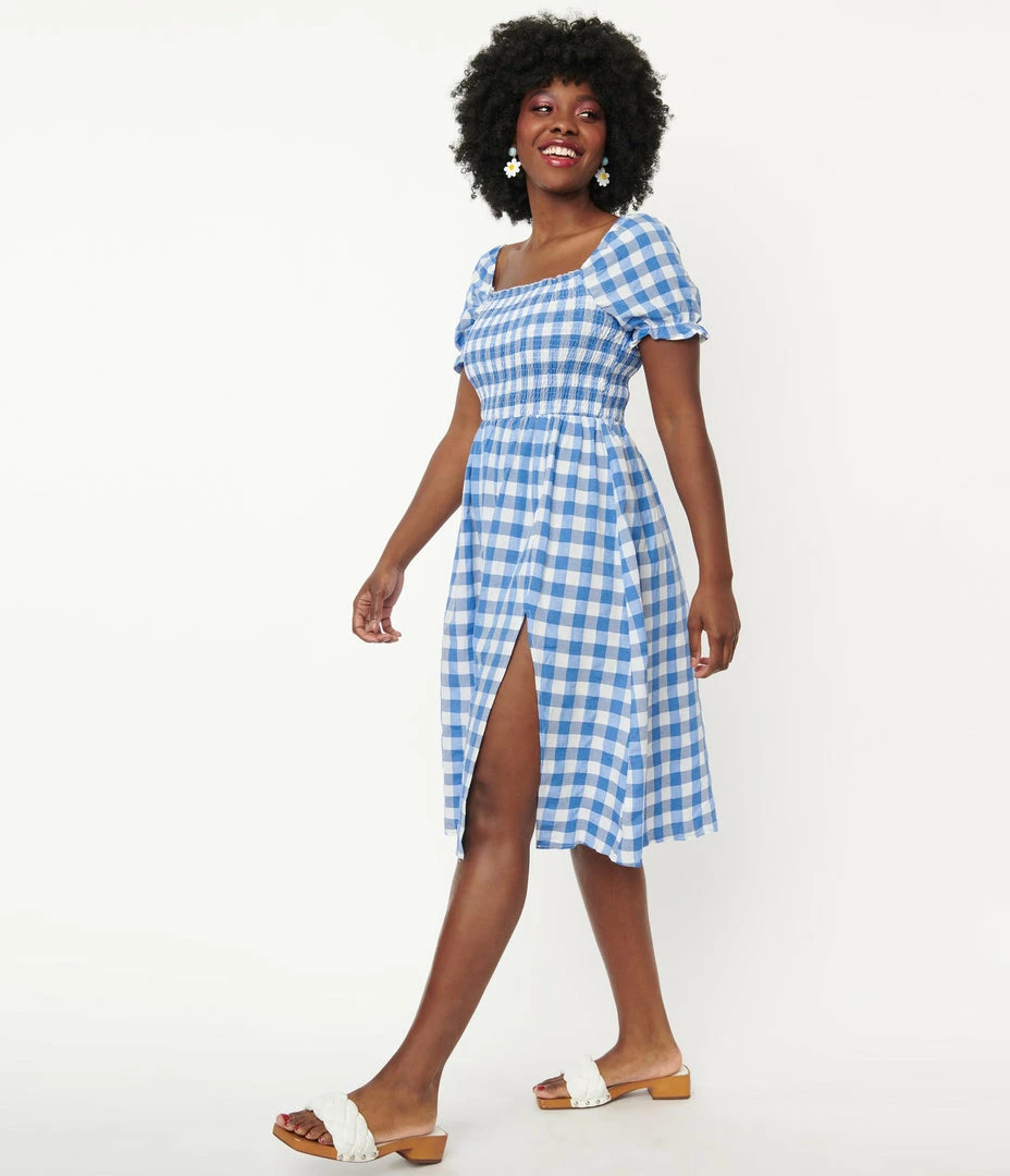 Flash Sale ๐คฉ Regenbogen Blue Gingham Smocked Midi ๐ Dress Sale ๐ฏ
