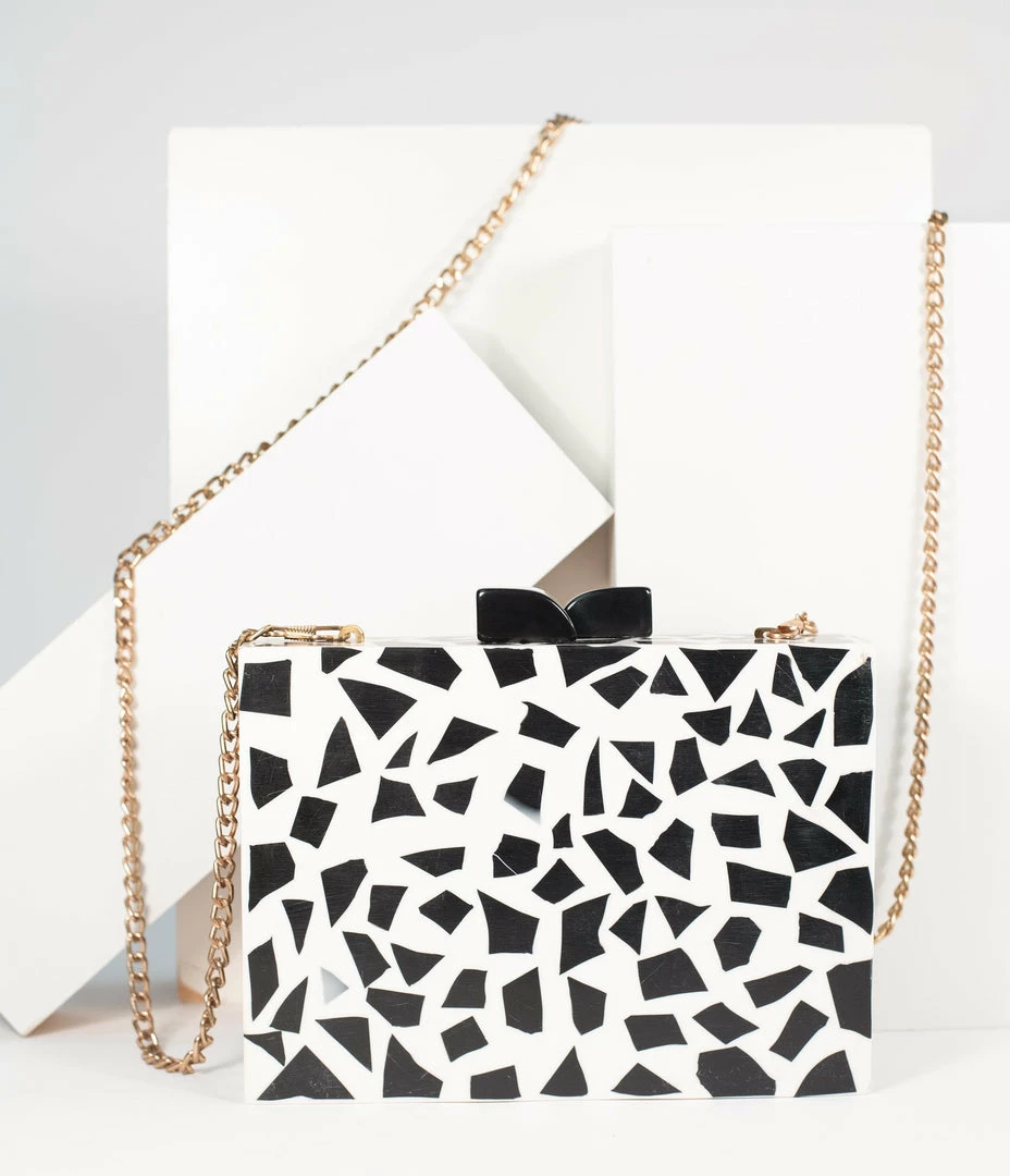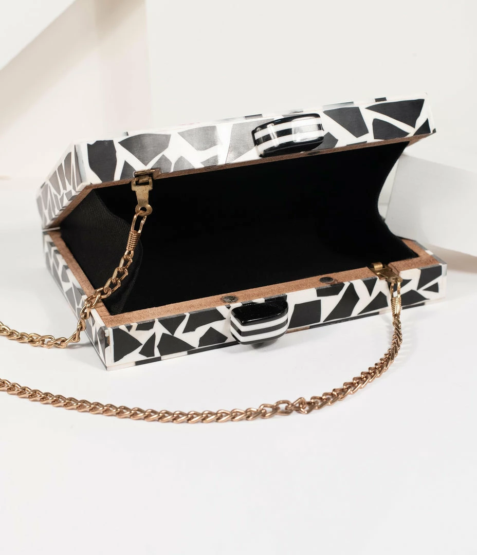 Flash Sale 🌟 Ricki Designs Retro Style Black & White Chevron Wood & Resin Hard Clutch Accessories 🔔