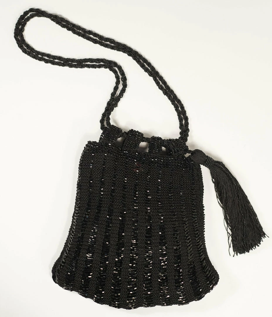 Budget ✨ Ricki Designs Vintage Style Black Beaded & Crochet Tassel Purse Flapper Accessories 🤩