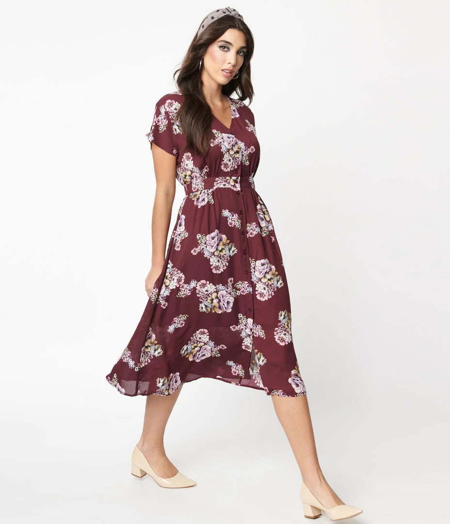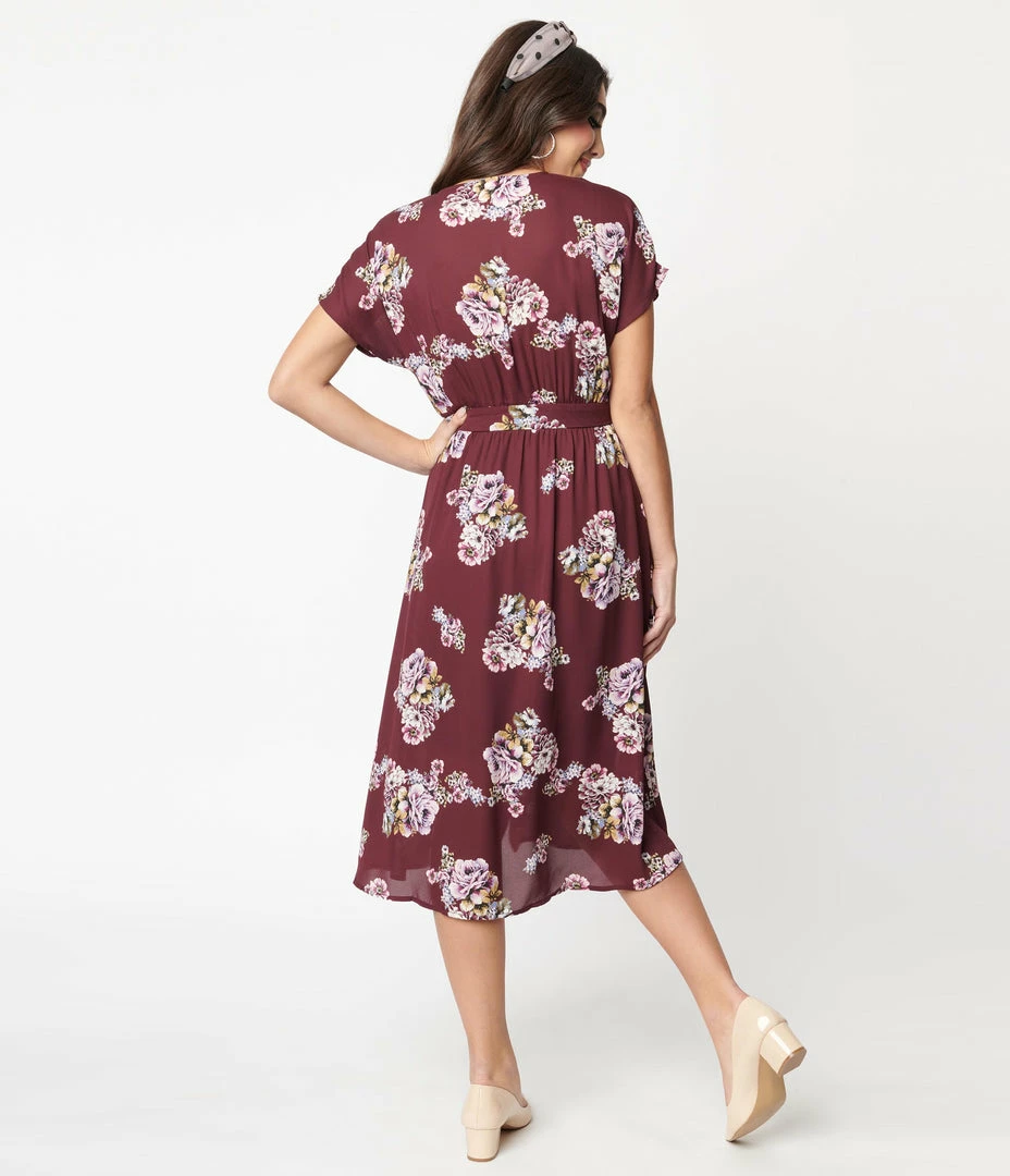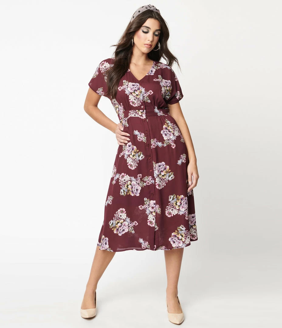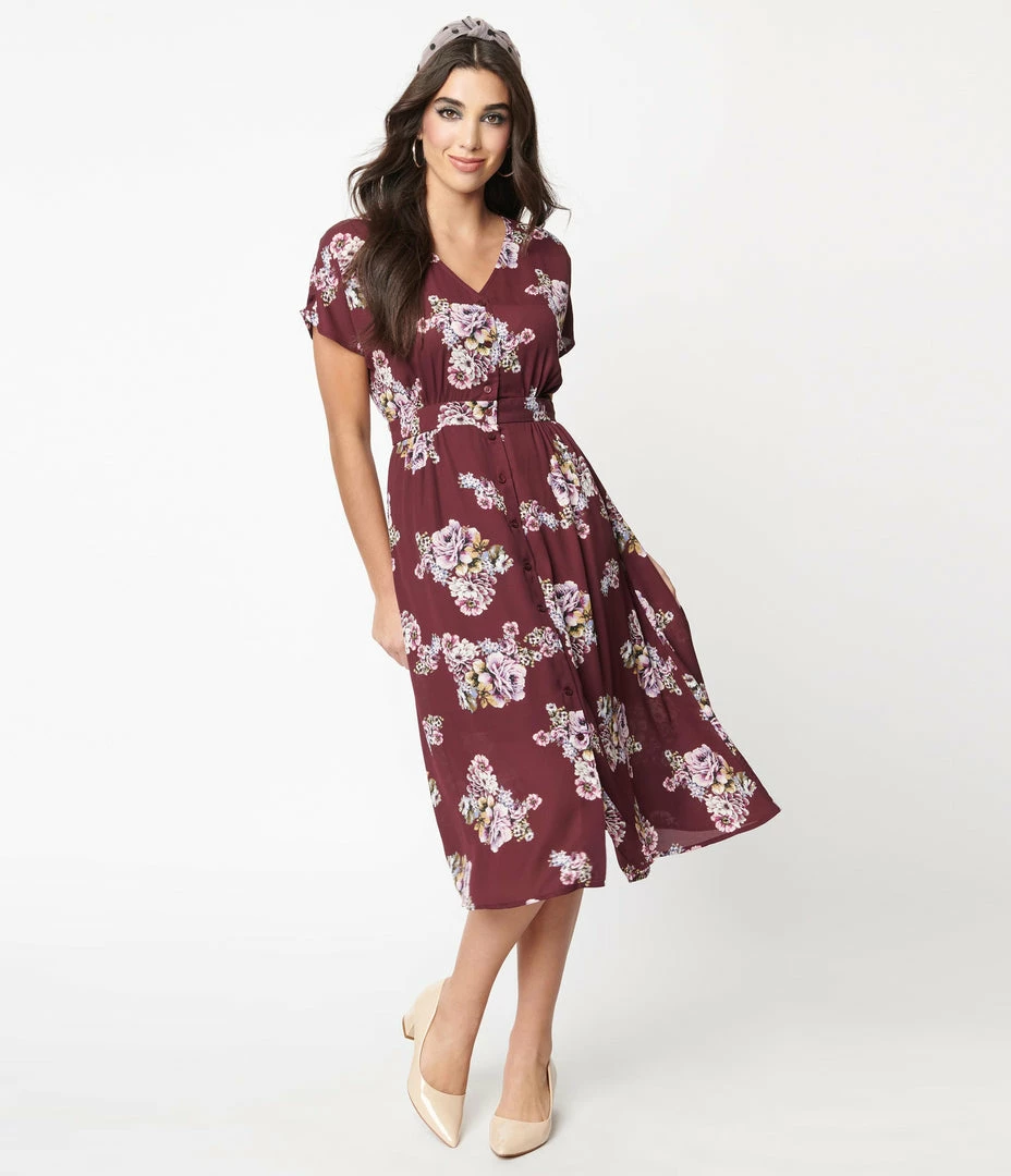 Top 10 ๐ Rokoko Wine & Light Purple Floral Midi ๐ Dress Sale ๐ฏ