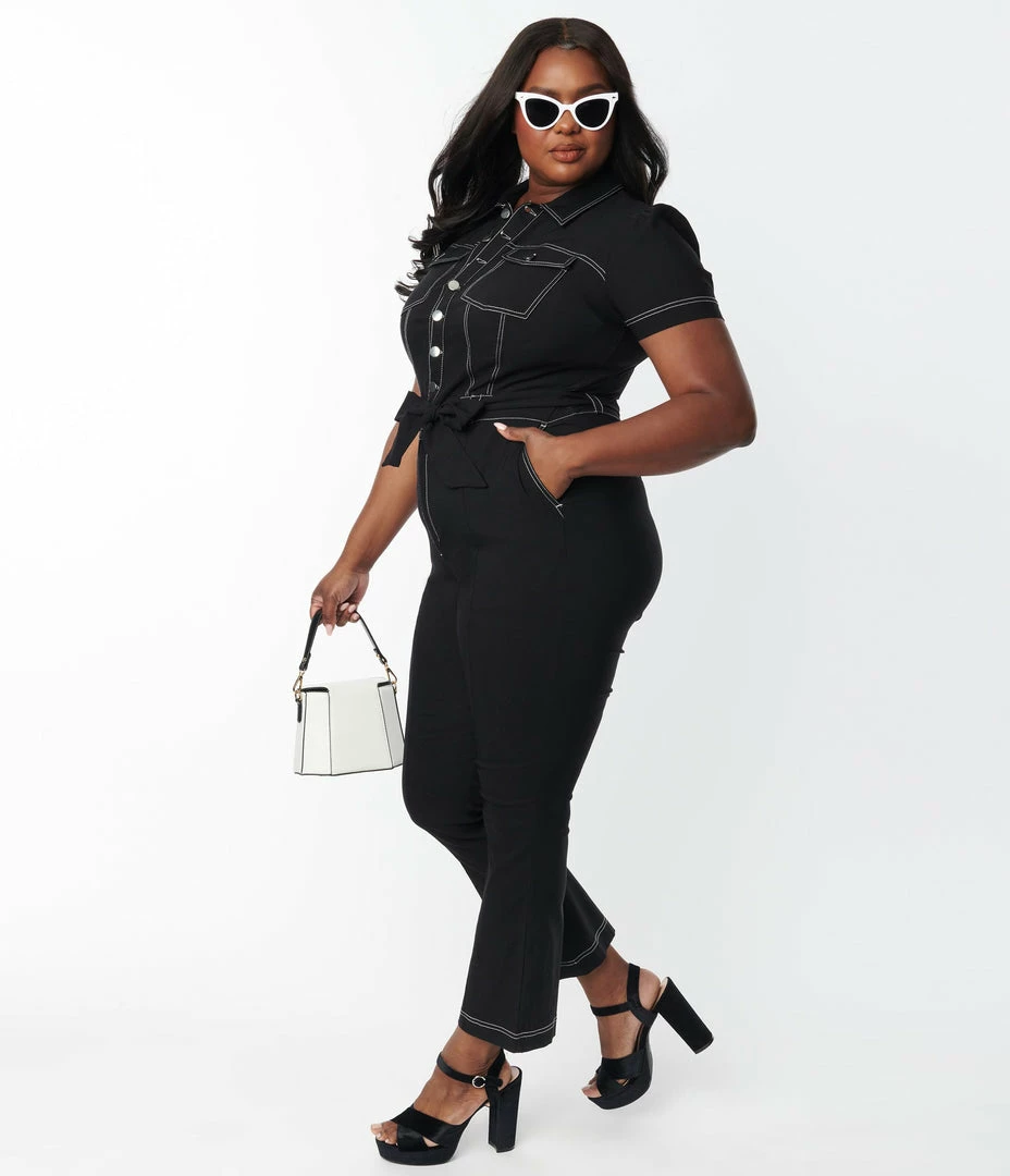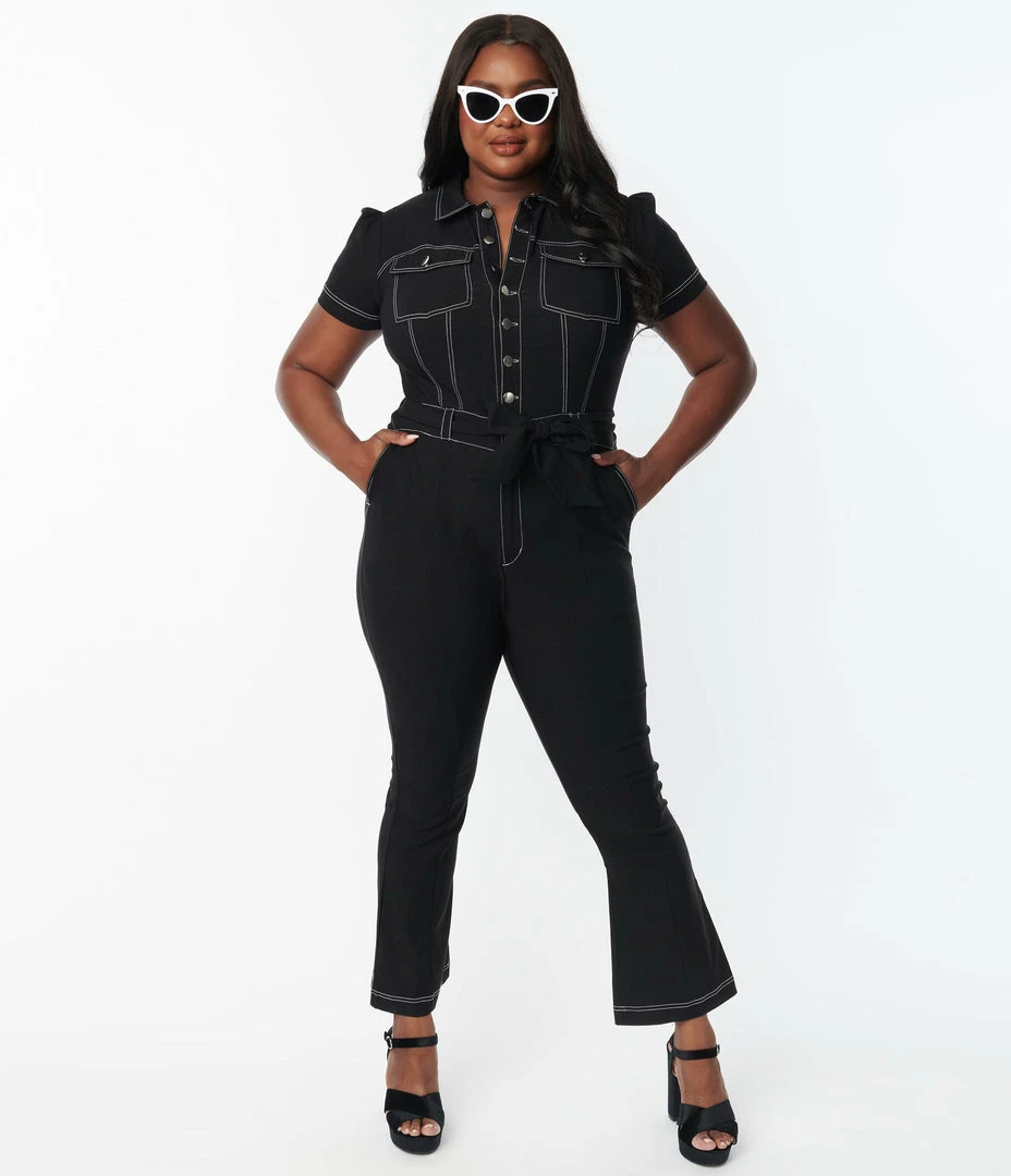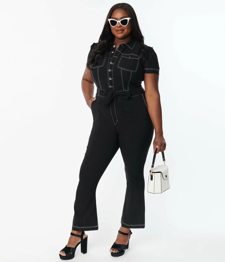 Hot Sale ⌛ Rompers & Jumpsuits Unique Vintage Plus Size Black Bexley Flare Jumpsuit ⭐