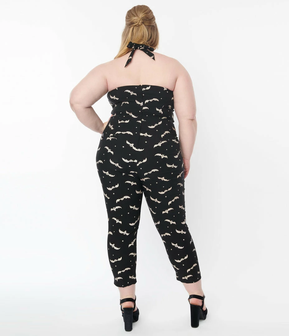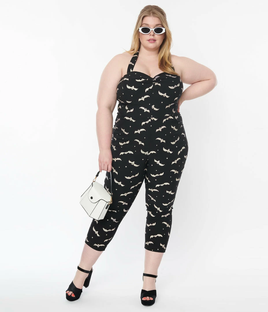 Discount โ๏ธ Rompers & Jumpsuits Unique Vintage Plus Size Black & Glow In The Dark Bat Print Marcel Jumpsuit ๐
