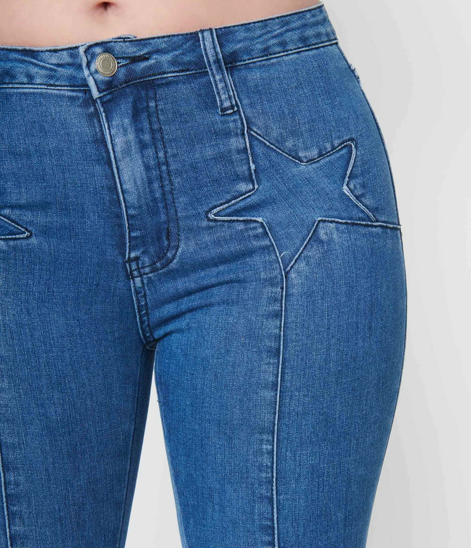 These darling jeans are crafted in a fabulous stretch cotton denim and boasts star detailing on the front. Complete with classic front fly, and back pockets