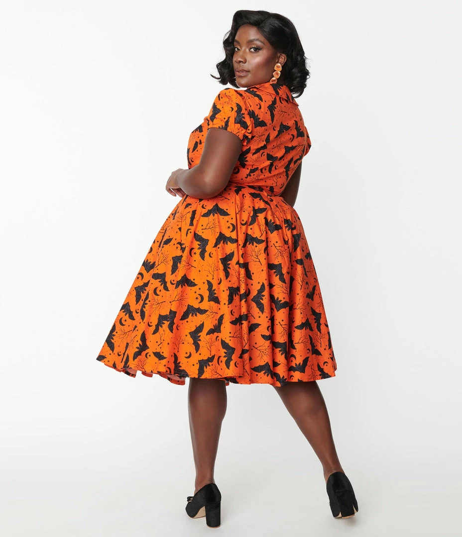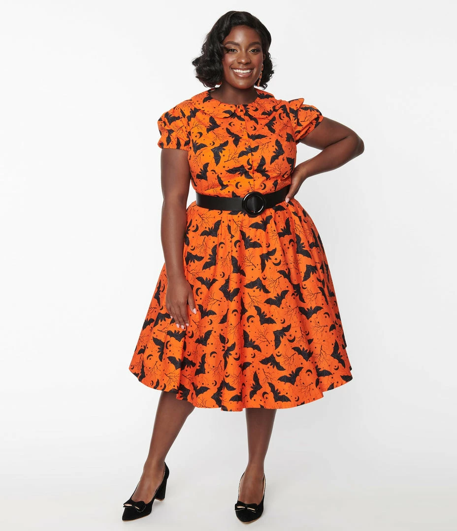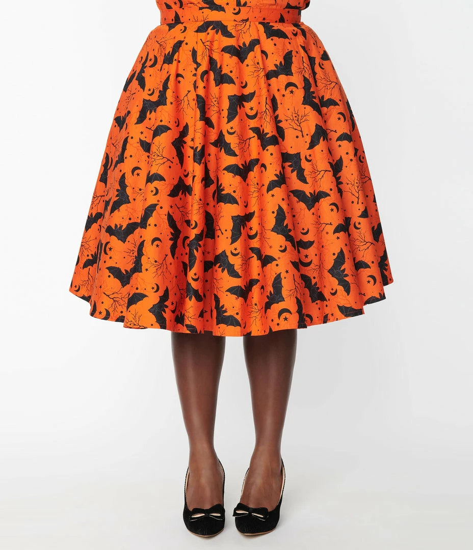 Brand new ๐ Sale Magnolia Place Plus Size Orange & Black Bat Sally Swing ๐ Skirt โค๏ธ