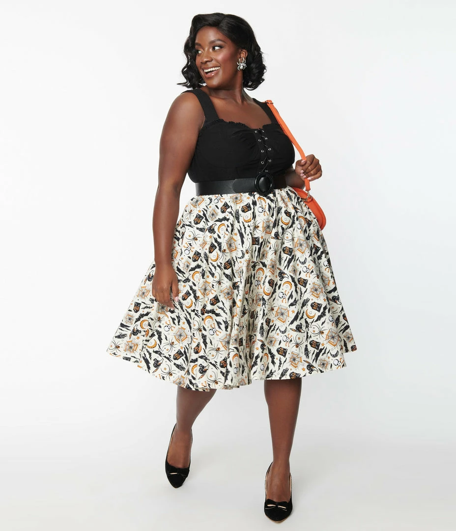 Cheapest โค๏ธ Sale Magnolia Place Plus Size White Spooky ๐ Halloween Print Sally Swing ๐ Skirt ๐