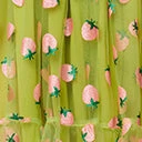 This divine top features a pink glitter strawberry print throughout the sheer avocado green mesh. The attached ties provide a full wrap design.