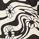 This daring mini dress features a groovy black and white swirl pattern that dances with daisies throughout the textured woven fabric. Outfitted with a solid white collar, secured in the back with a button keyhole, and framed by short sleeves.