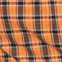 A flirtatious top crafted in a lightweight crepe that dances with a plaid pattern in orange and black. Secured with attached ties at the waist while the black western style yoke is framed by short sleeves.