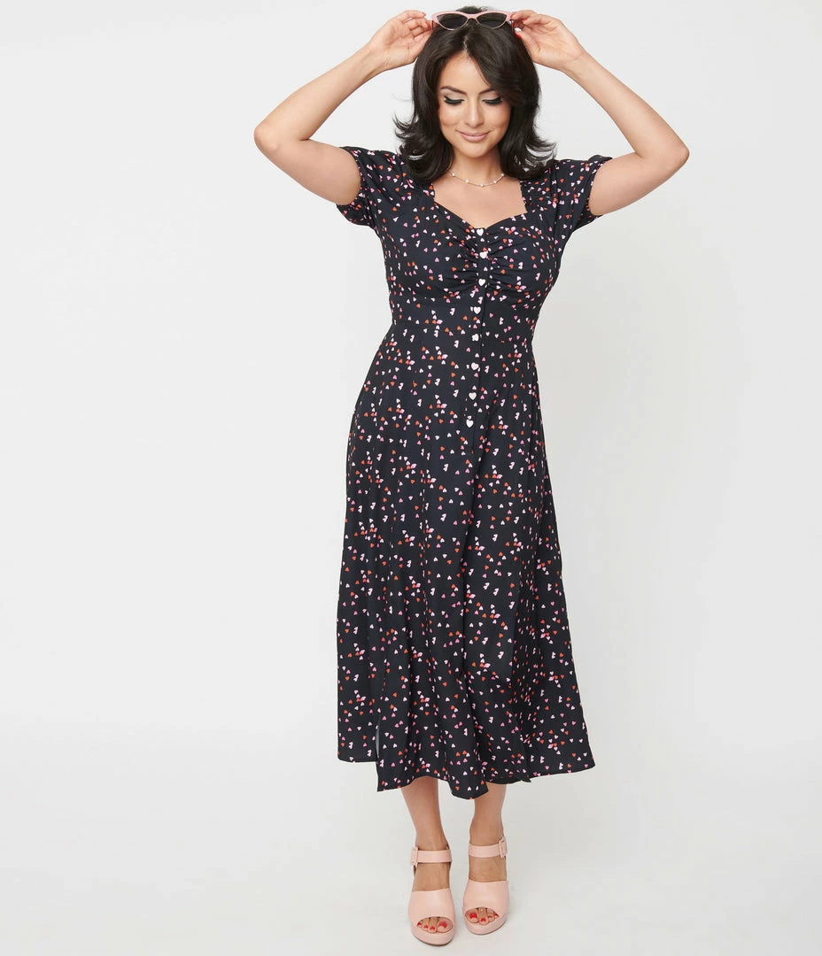 Cheapest ๐ Sale Unique Vintage Black & Heart Print Wild Hearts Run Free Midi ๐ Dress โ