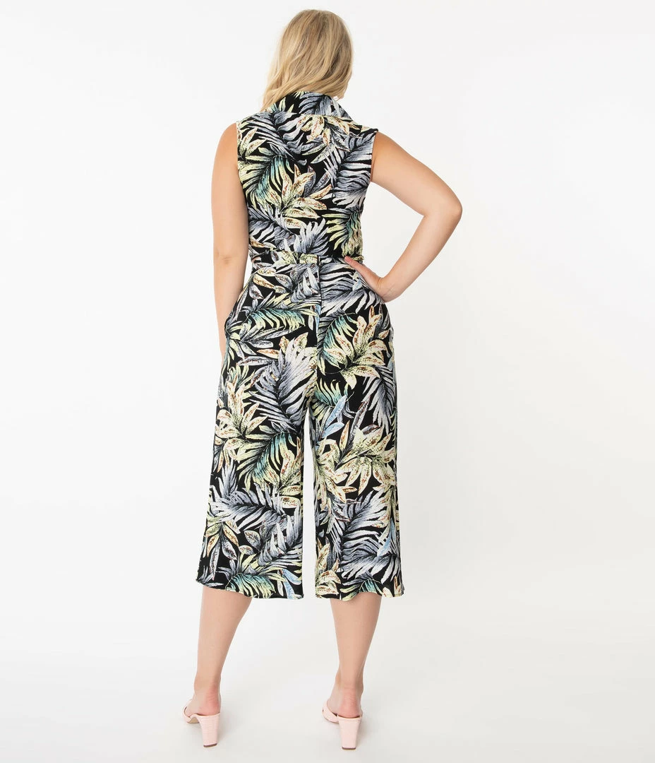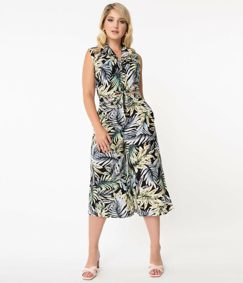 Always take the scenic route, gals! These fabulous culottes from Unique Vintage are crafted in a smooth, lightweight crepe that dances with tropical palm leaves throughout a black backdrop. The Sicily Pants boasts a banded waist, cinched in with a back zipper and outfitted with side pockets for modern function. Complete with sweeping wide legs, get lost in paradise!