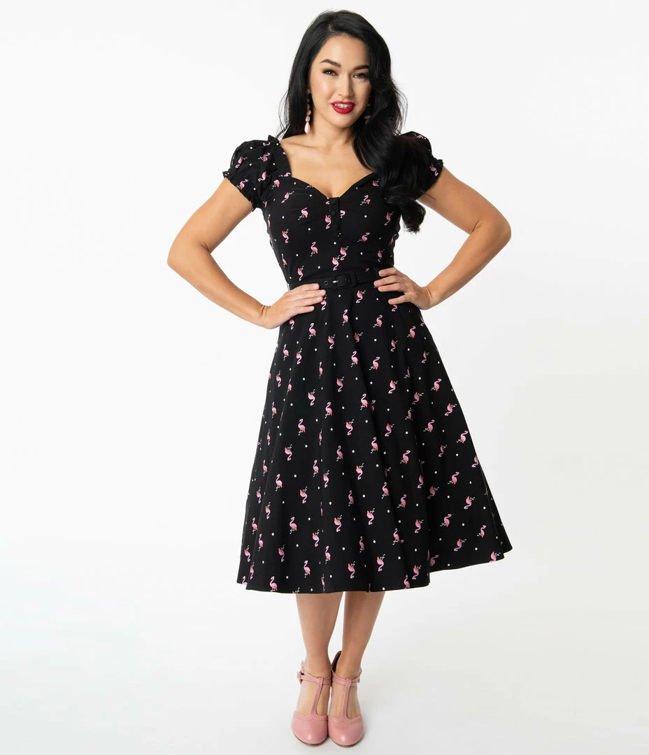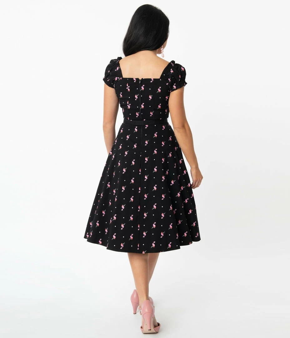 Buy 👏 Sale Unique Vintage Black & Pink Flamingo Print Ohara Swing 👗 Dress 🔥