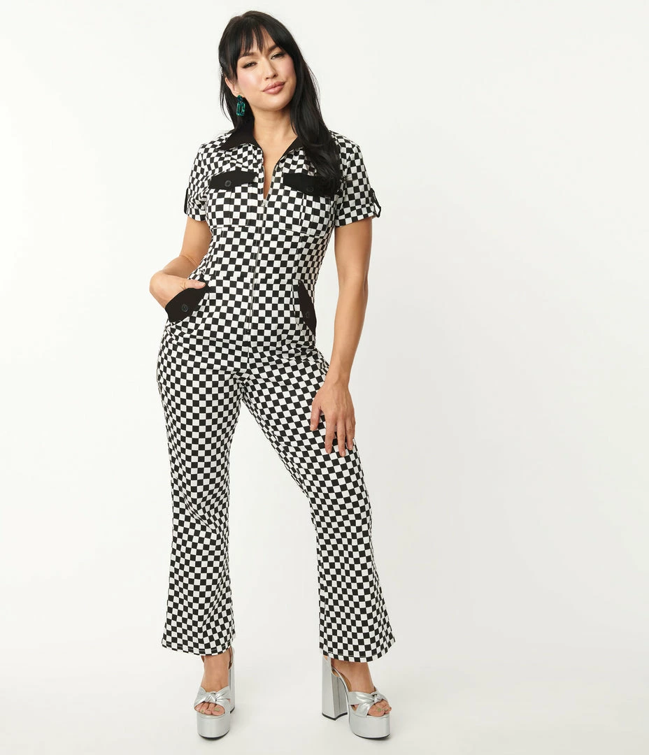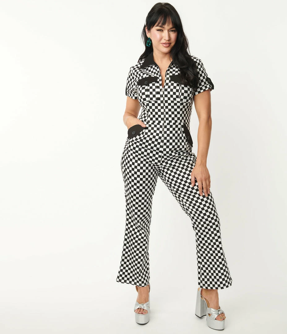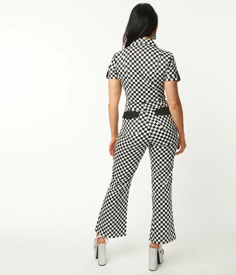 Cheap 🌟 Sale Unique Vintage Black & White Checkered Cargo Jumpsuit ✨