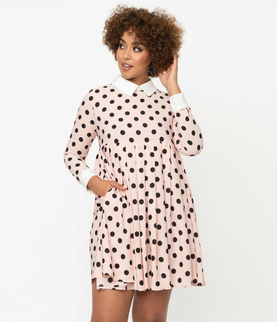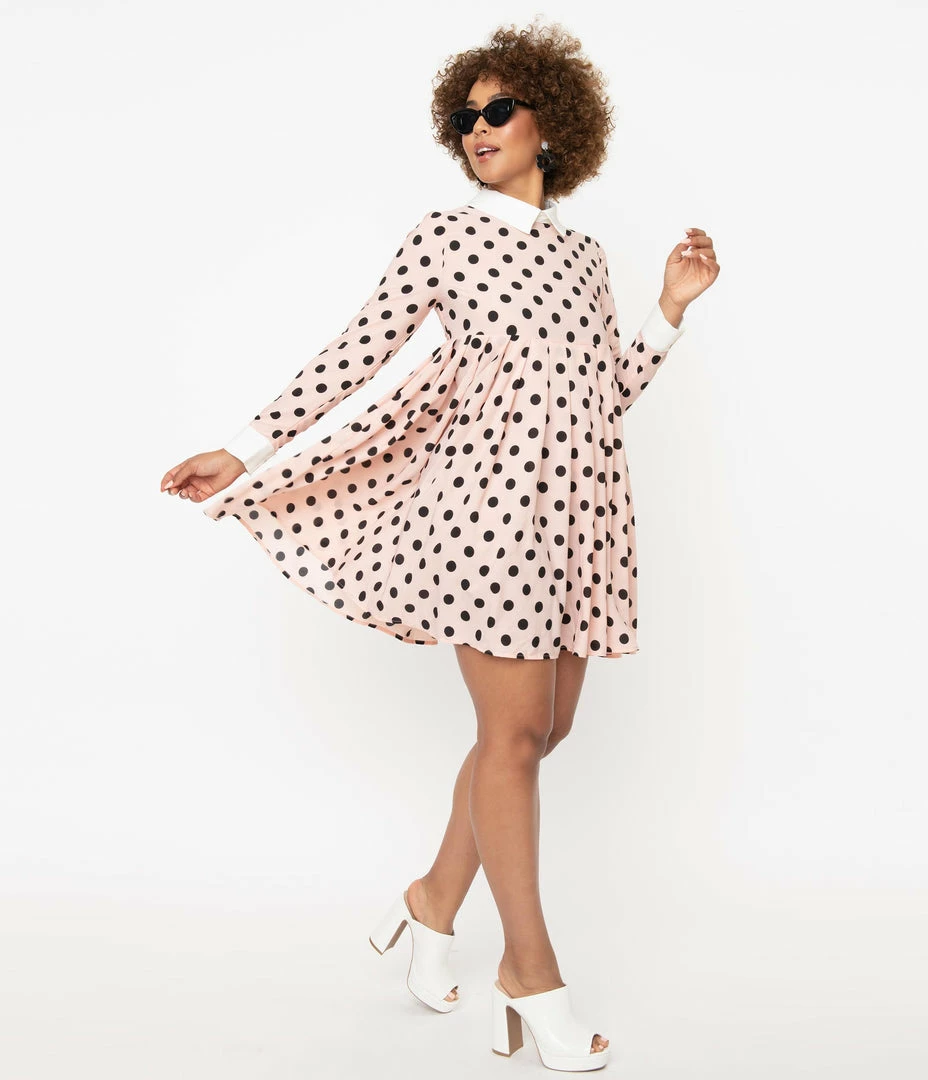 Cheap โจ Sale Unique Vintage Pink & Black Polka Dots Peggy Babydoll ๐ Dress โ