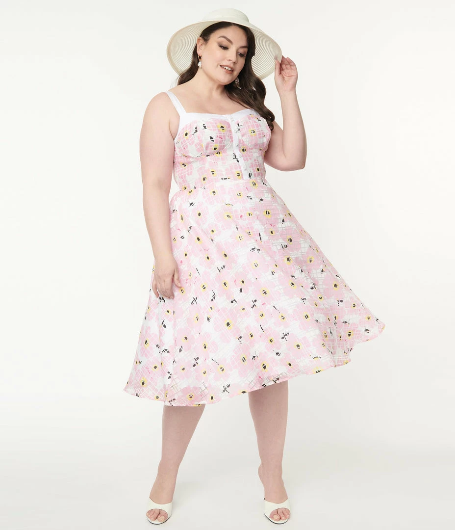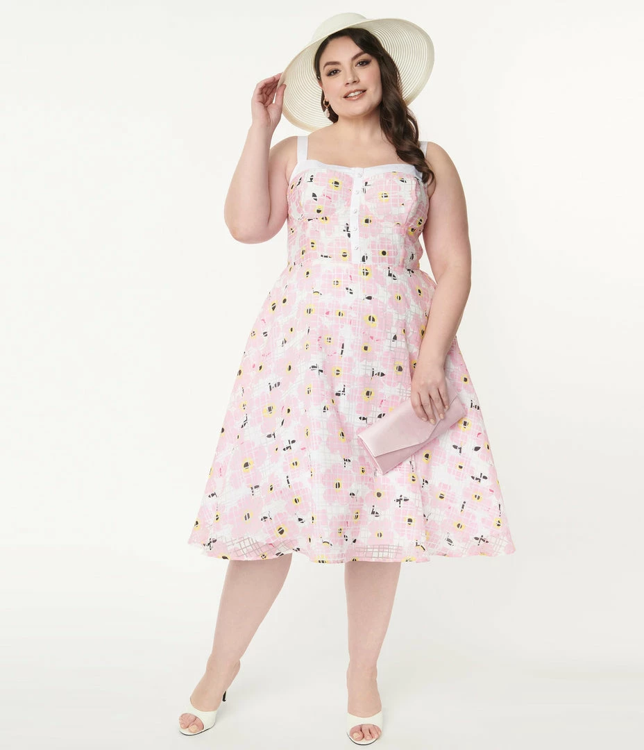 Brand new ๐ Sale Unique Vintage Plus Size 1950s Pink Floral Burnout Swing ๐ Dress ๐งจ