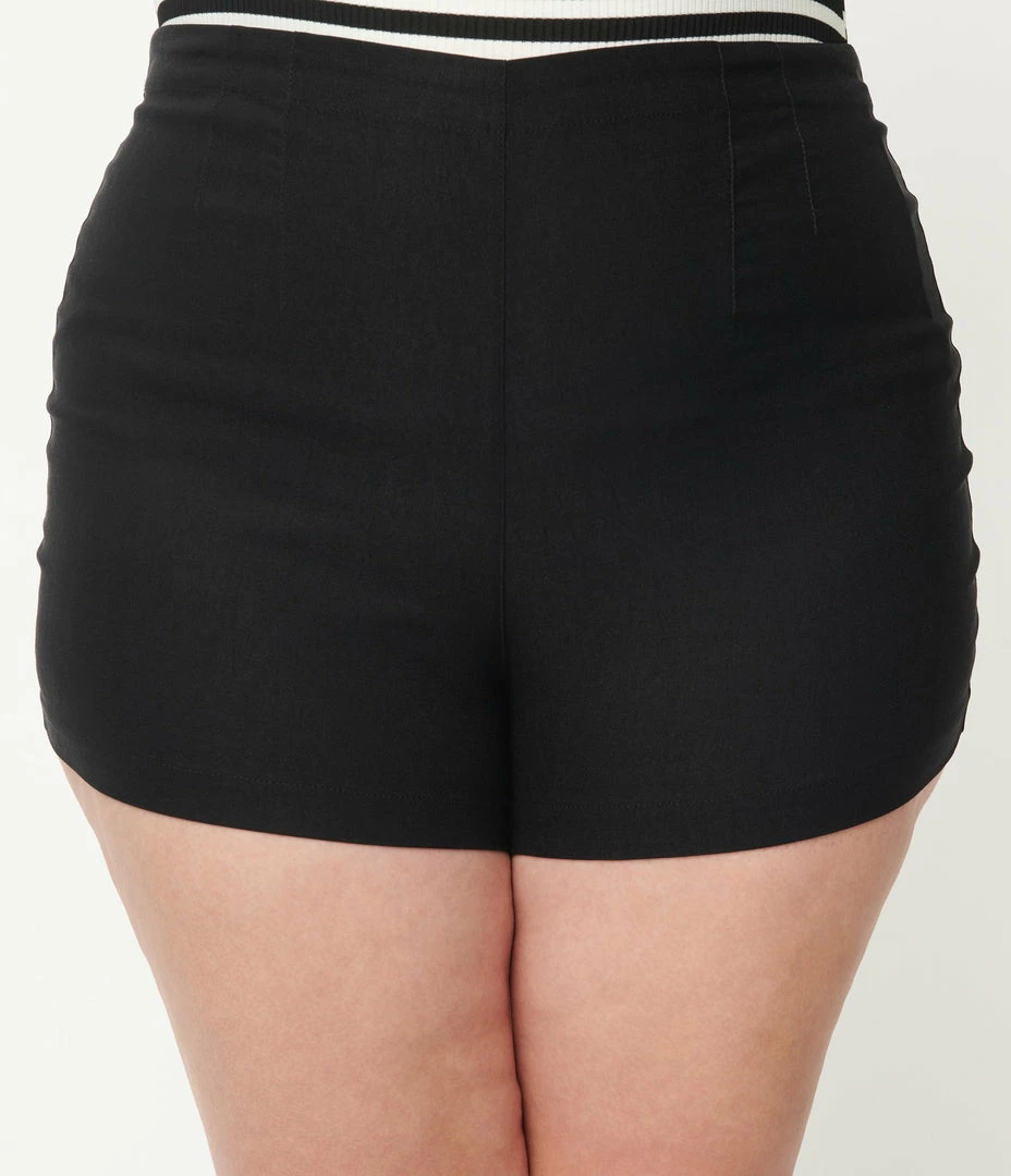 A classic pair of plus size shorts, cast in a black bengaline stretch. Complete with a back zipper.
