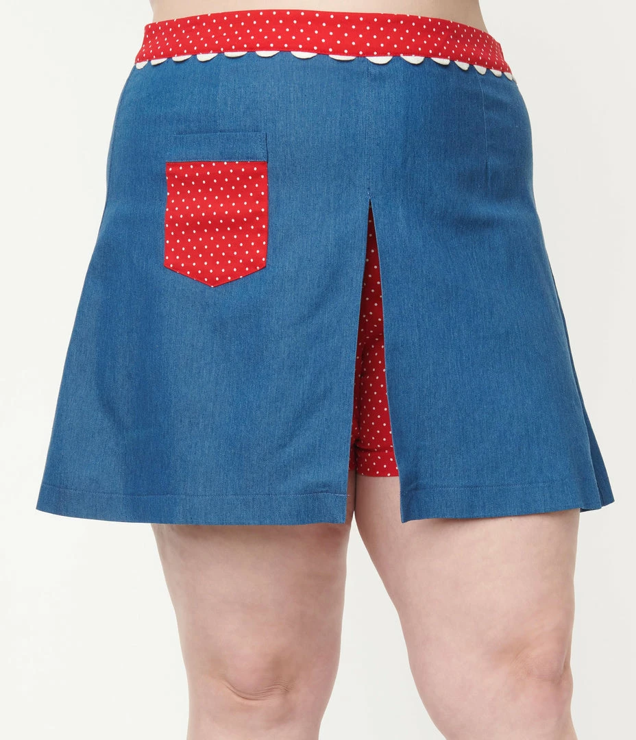Brand new ๐คฉ Sale Unique Vintage Plus Size Chambray & Red Dotted Hide & Seek Skort โ