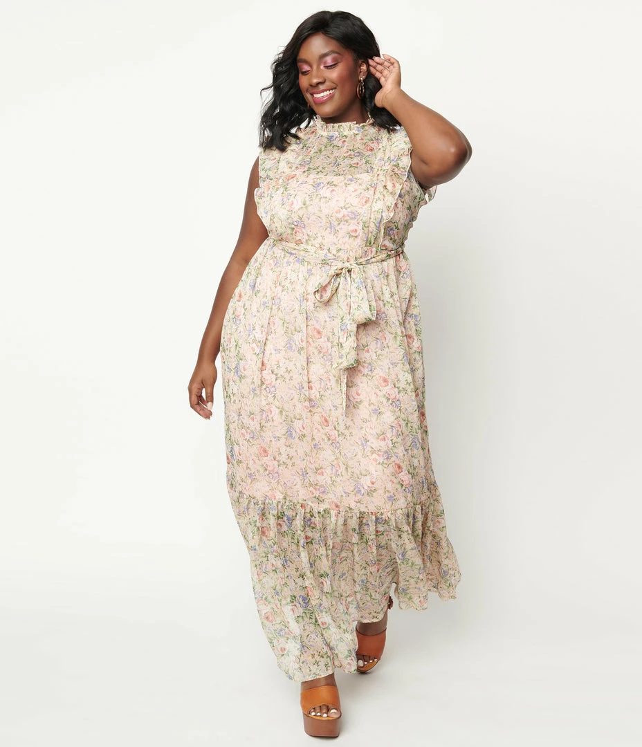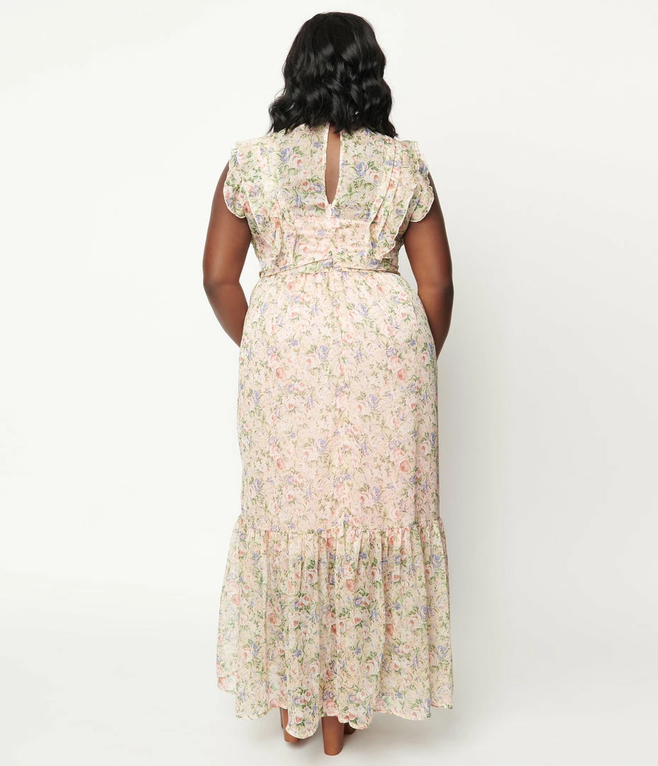 Best Sale ๐ฏ Sale Unique Vintage Plus Size Pink & Pastel Floral Print Beauty Queen Maxi ๐ Dress ๐