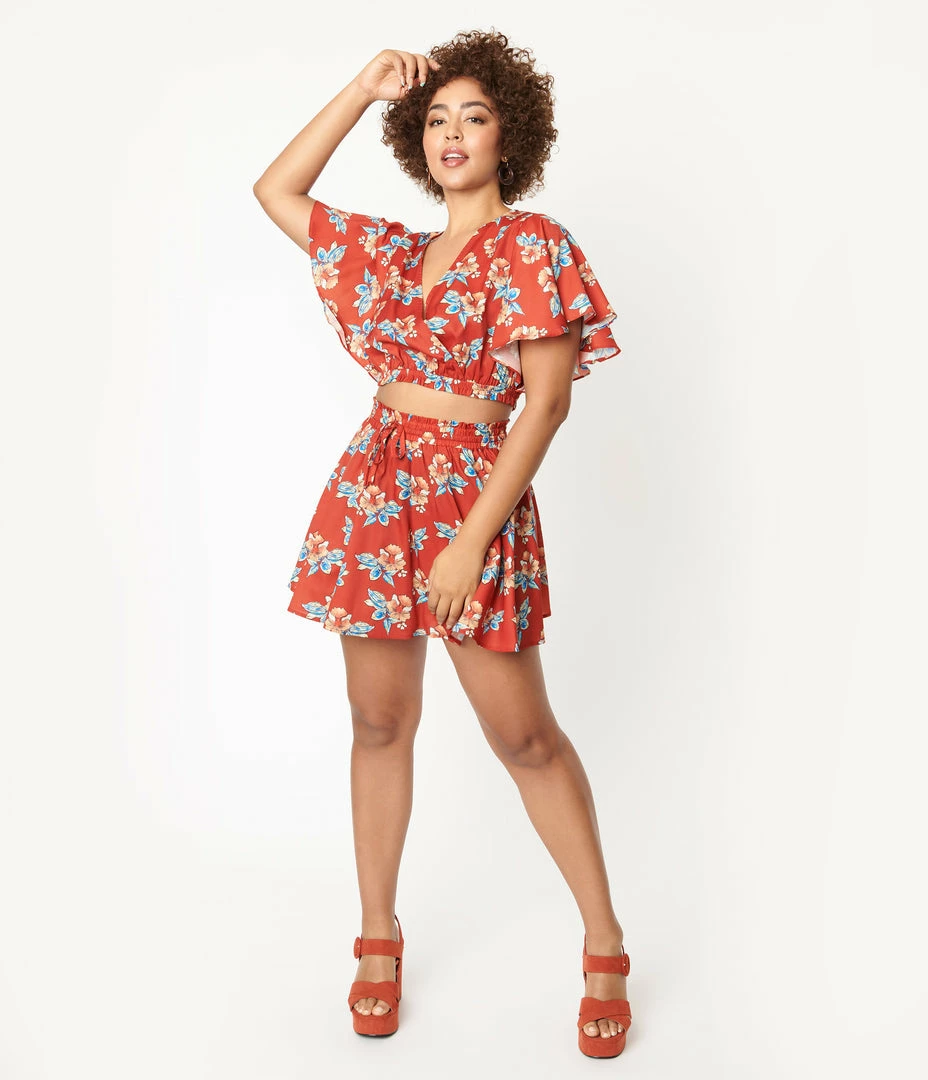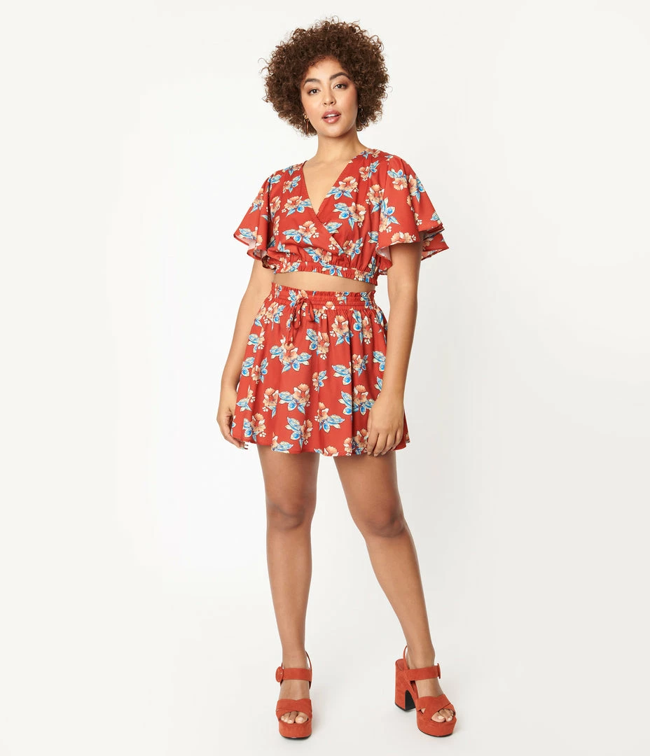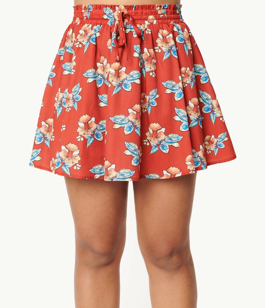 Promo ๐ Sale Unique Vintage Rust & Tropical Floral Print Daryl Skort โญ