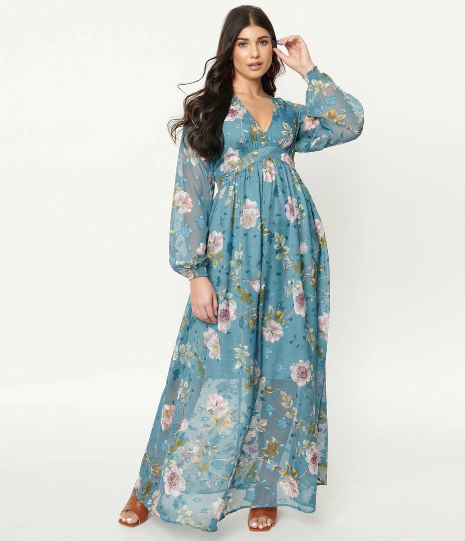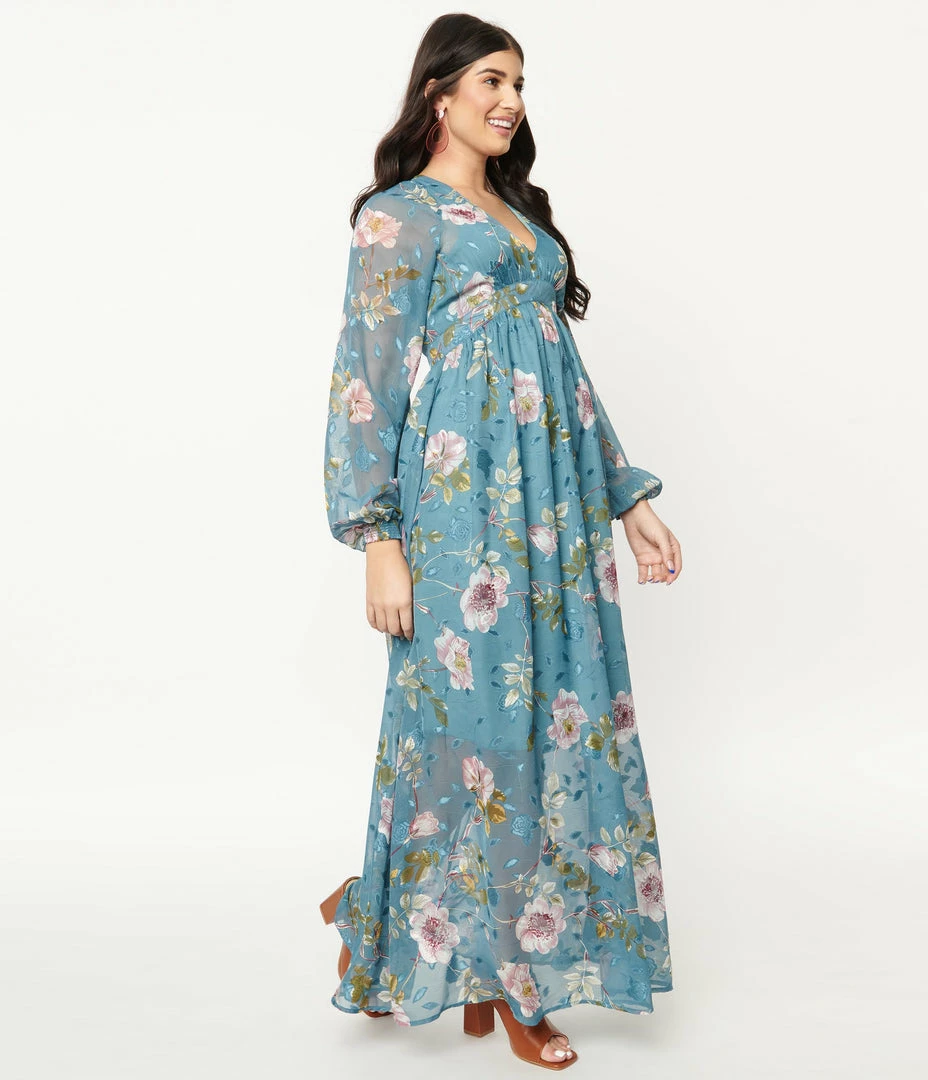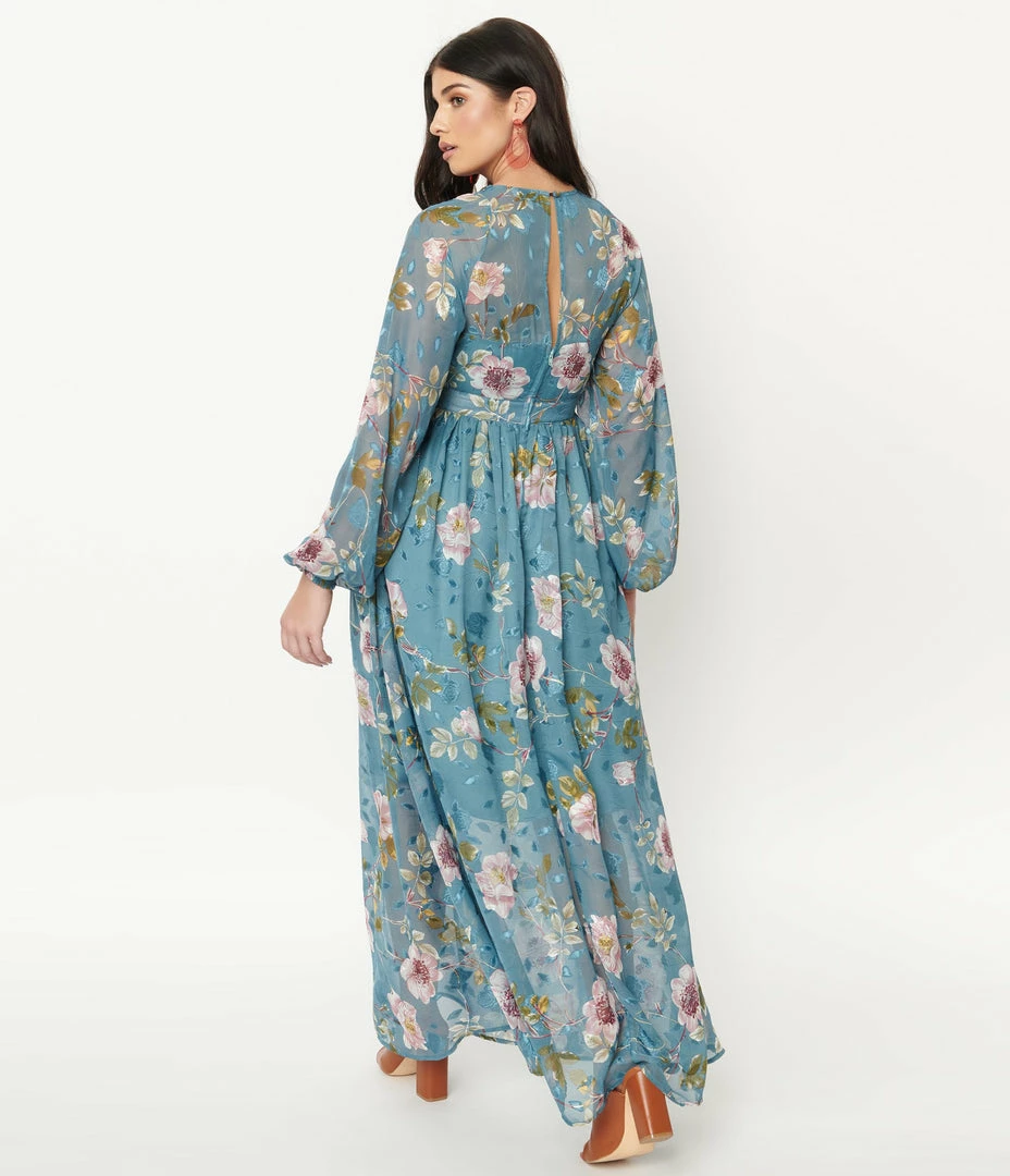 Buy 👏 Sale Unique Vintage Teal & Purple Floral Print Buttercup Maxi 👗 Dress 🎁