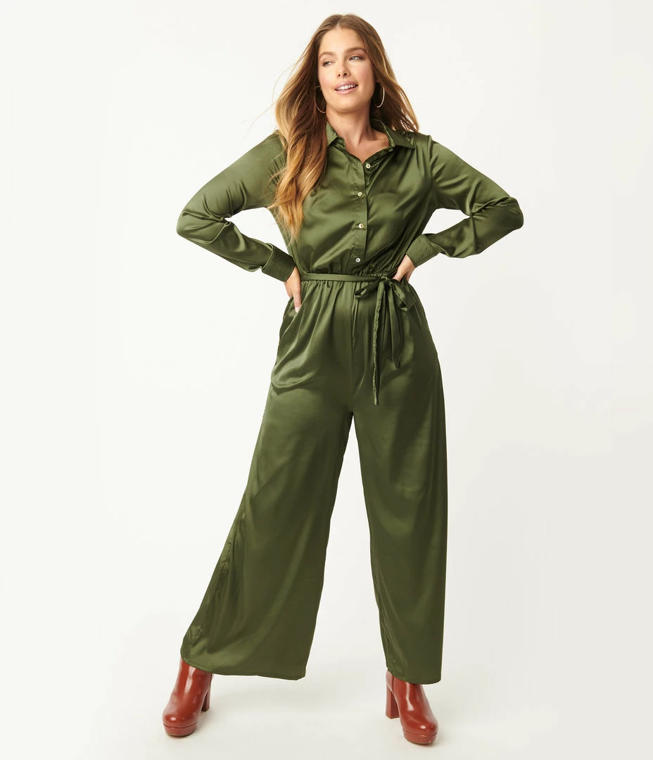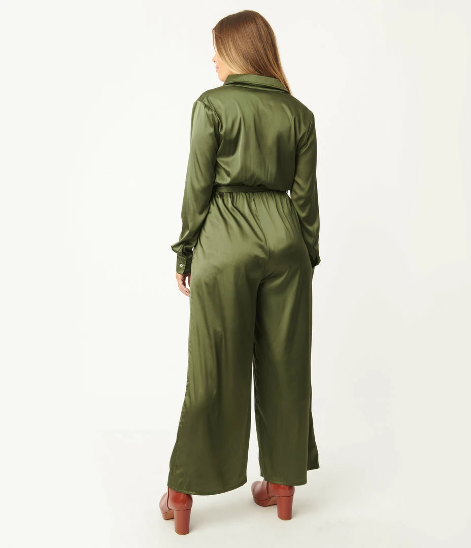 Hot Sale โ๏ธ She+Sky Sale Olive Green Satin Jumpsuit ๐