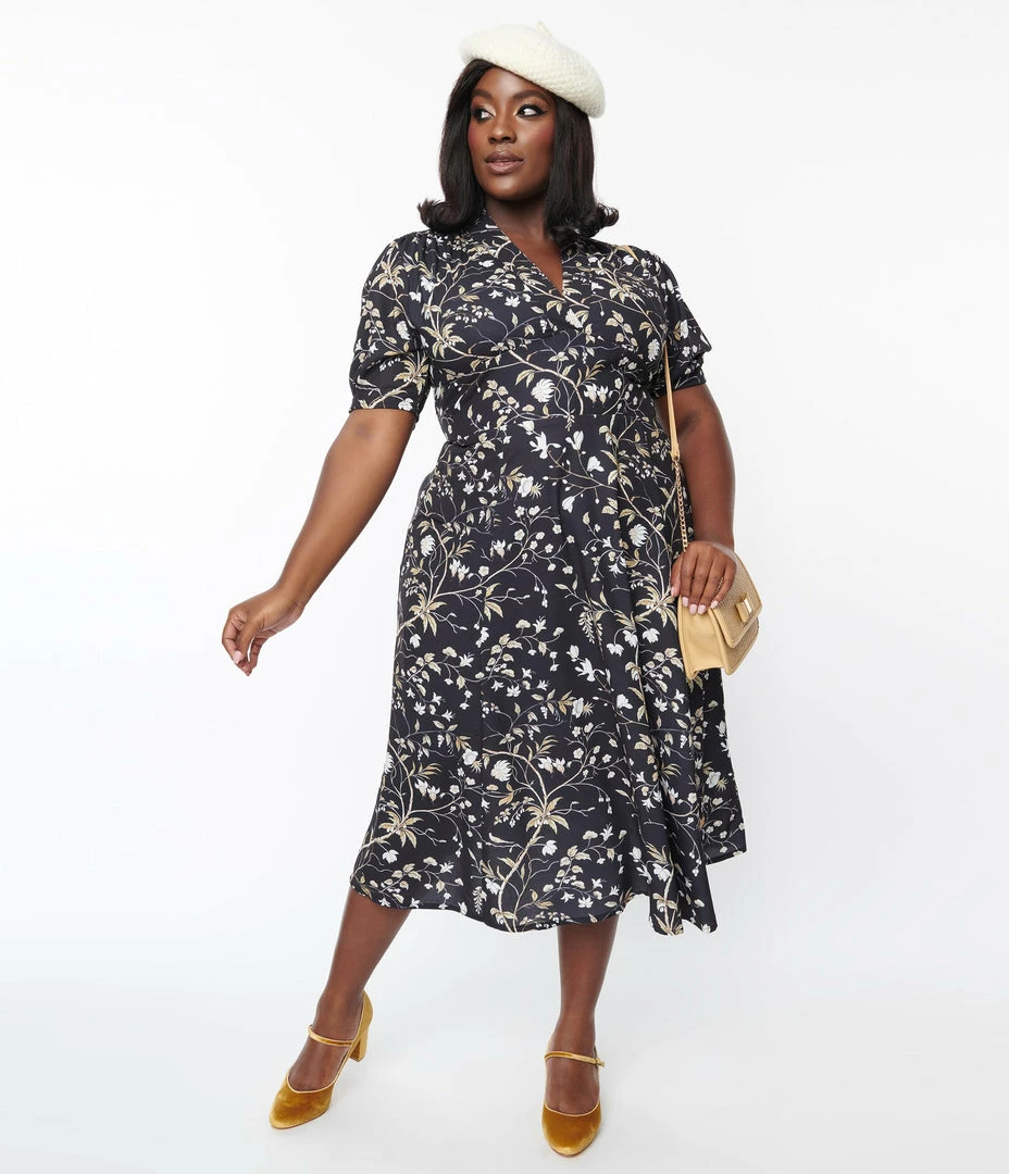 Deals โ SHEEN Clothing Ltd Plus Size Black Floral Leaf Tia ๐ Dress โจ