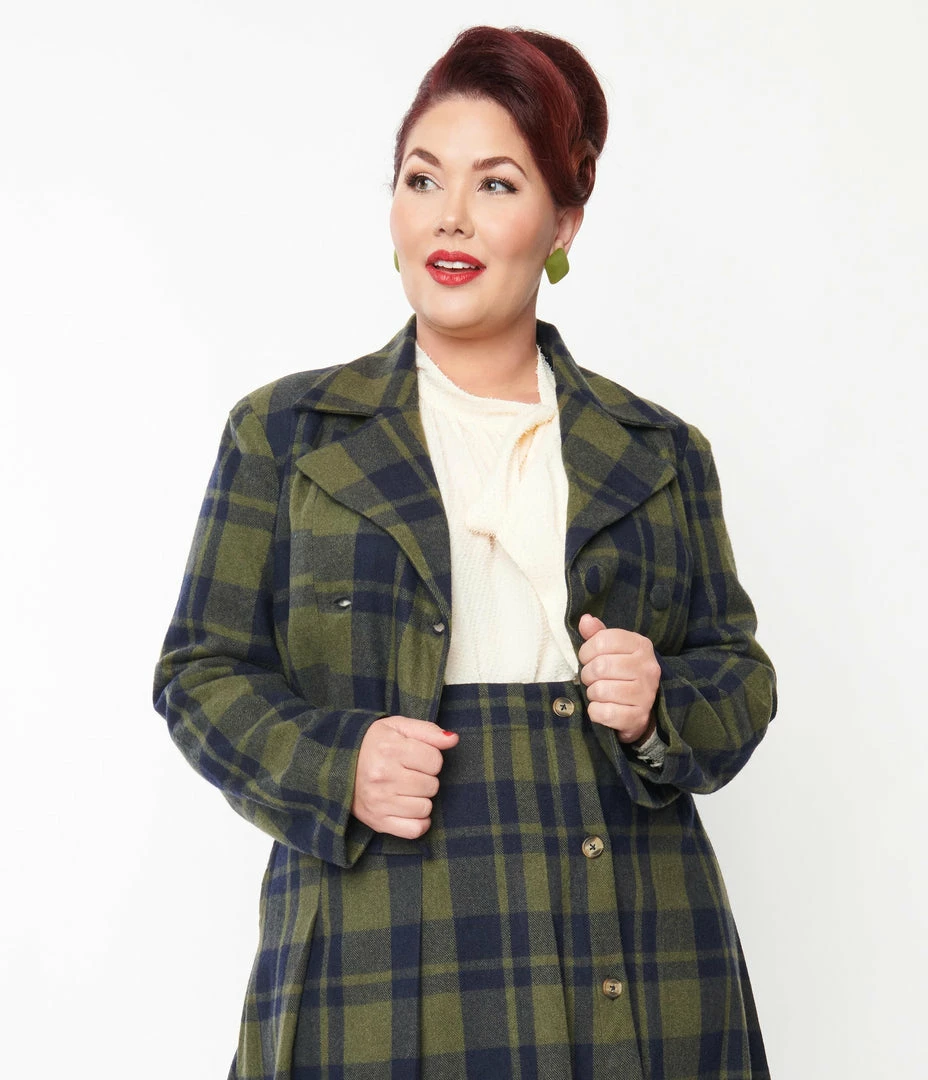 Promo ⭐ SHEEN Clothing Ltd Plus Size Green & Navy Plaid Jacket 👏