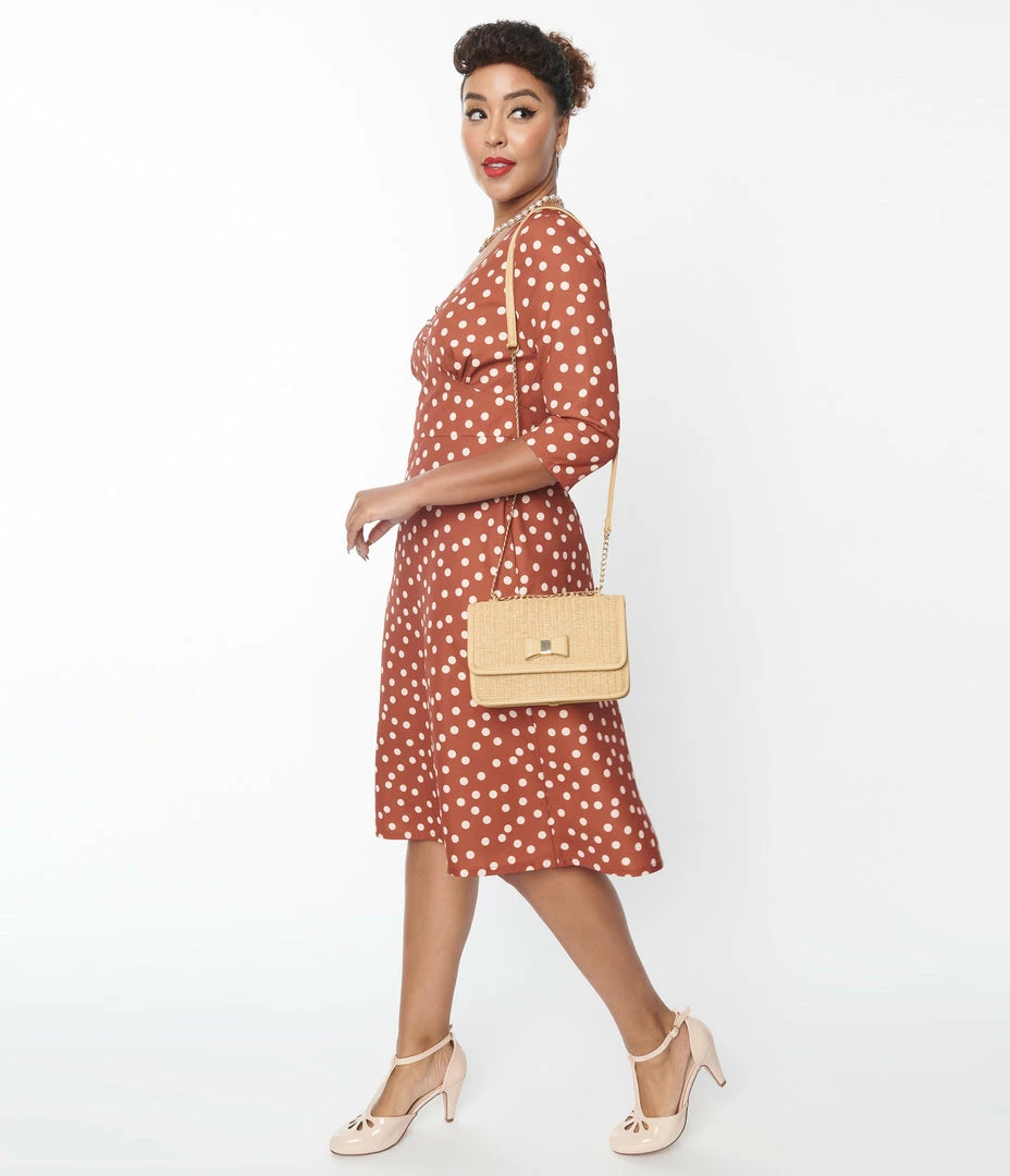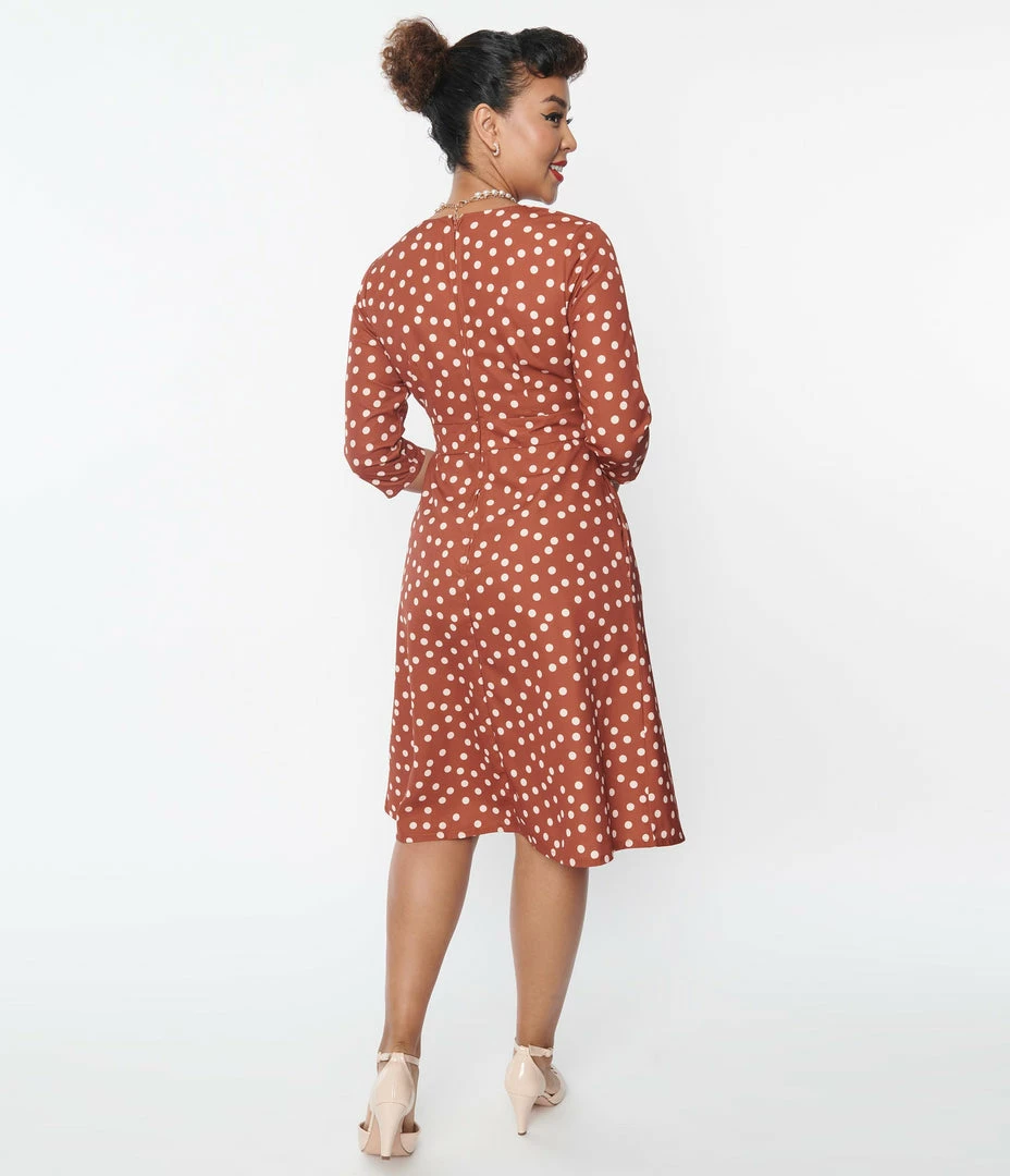 Best Pirce π SHEEN Clothing Ltd Trending Rust Red & Cream Polka Dot Swing π Dress π₯°