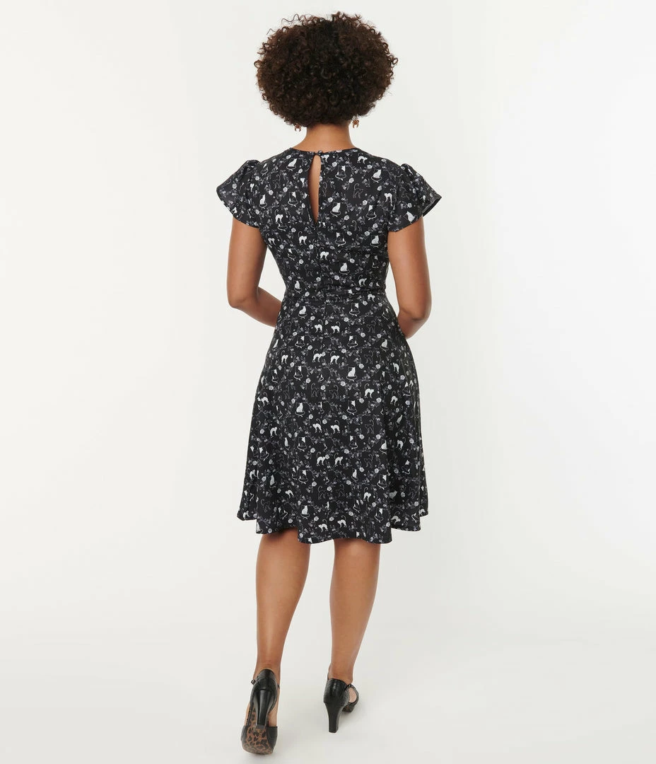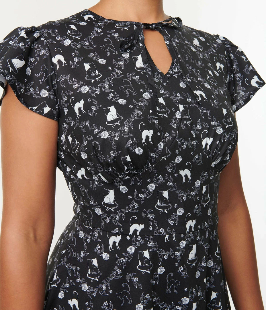 Top 10 🎉 Silver Stop Inc. (Voodoo Vixen) Voodoo Vixen Black & Ivory Cats & Florals Flare 👗 Dress Sale ✔️