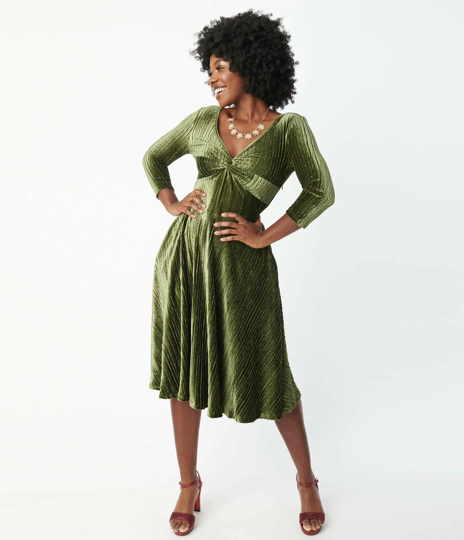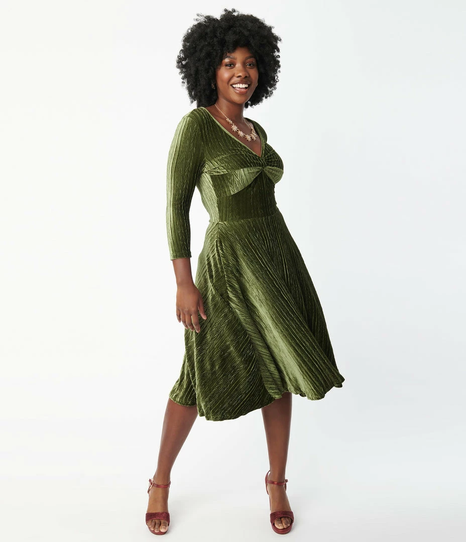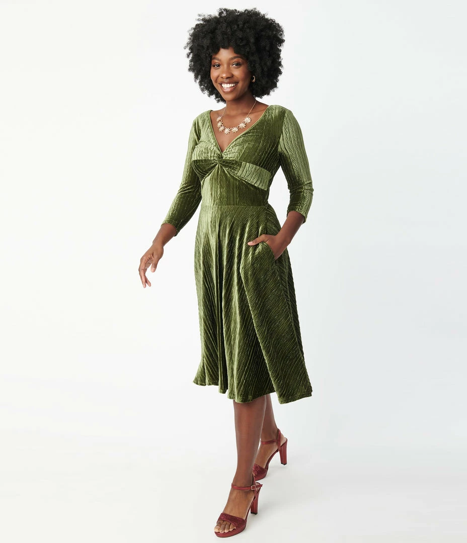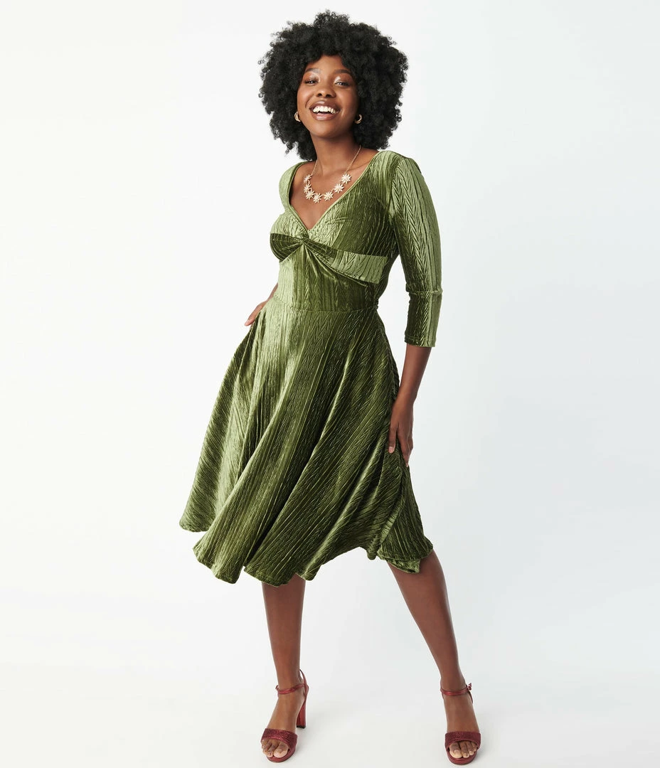 New ⌛ Silver Stop Inc. (Voodoo Vixen) Voodoo Vixen Olive Embossed Velvet Swing 👗 Dress Sale 🥰