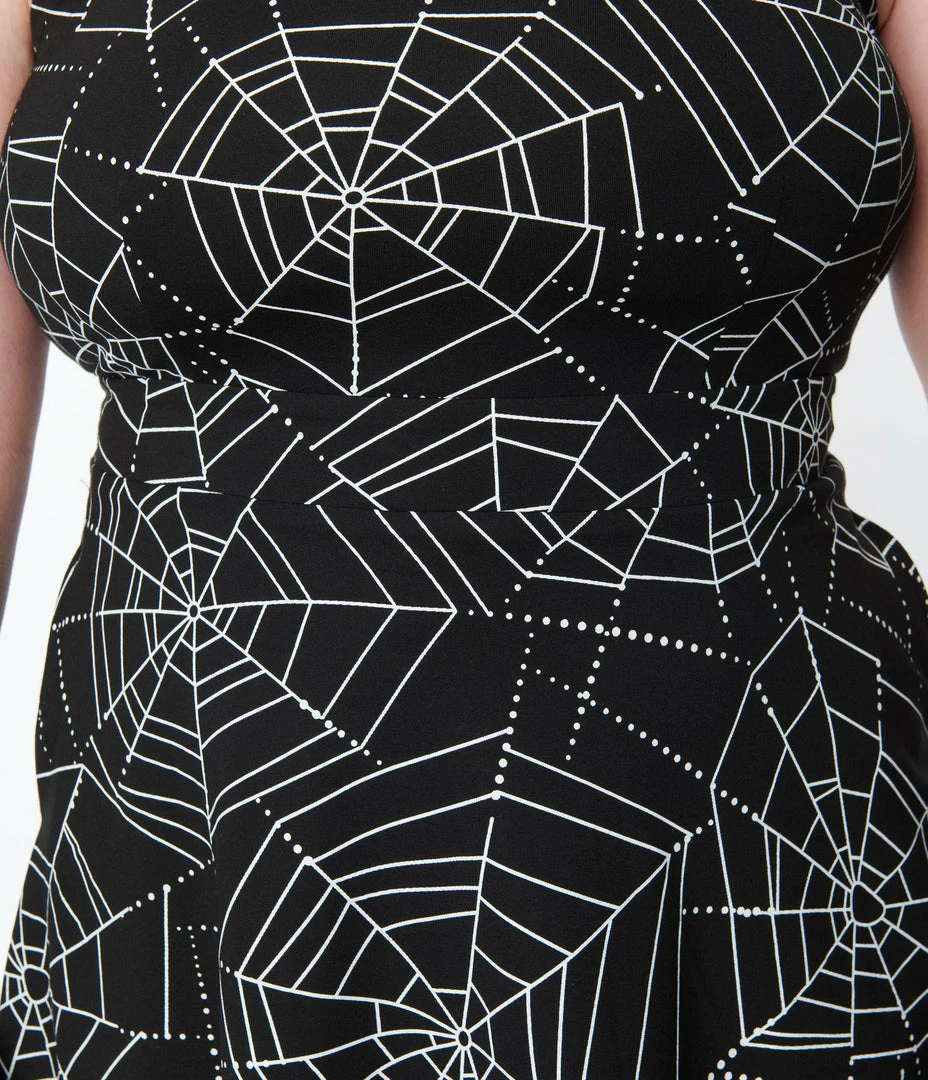 Budget 🌟 Silver Stop Inc. (Voodoo Vixen) Voodoo Vixen Plus Size Black & Spiderweb Pinafore Flare 👗 Dress ⭐