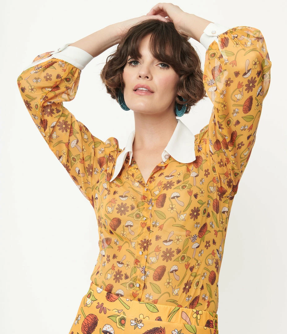 Coupon ๐ Smak Parlour 1950s Mustard Garden Party Print Blouse Sale โค๏ธ