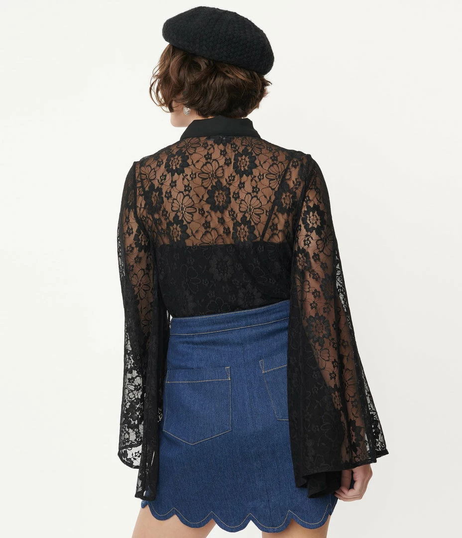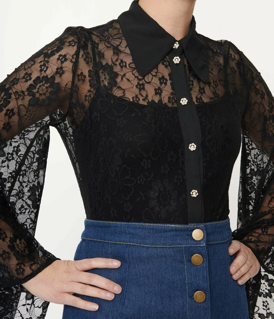 Promo ๐ Smak Parlour Black Floral Lace Bell Sleeve Blouse โจ