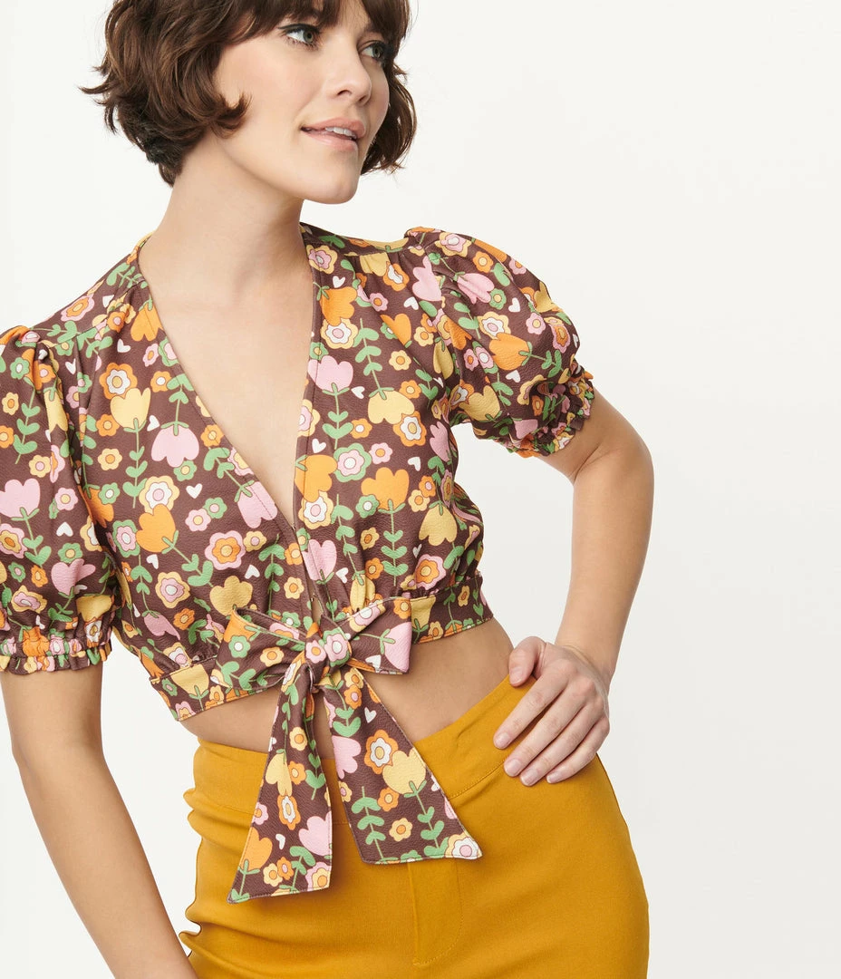 Buy โค๏ธ Smak Parlour Brown & Retro Tulip Print Roller Queen Crop Blouse ๐