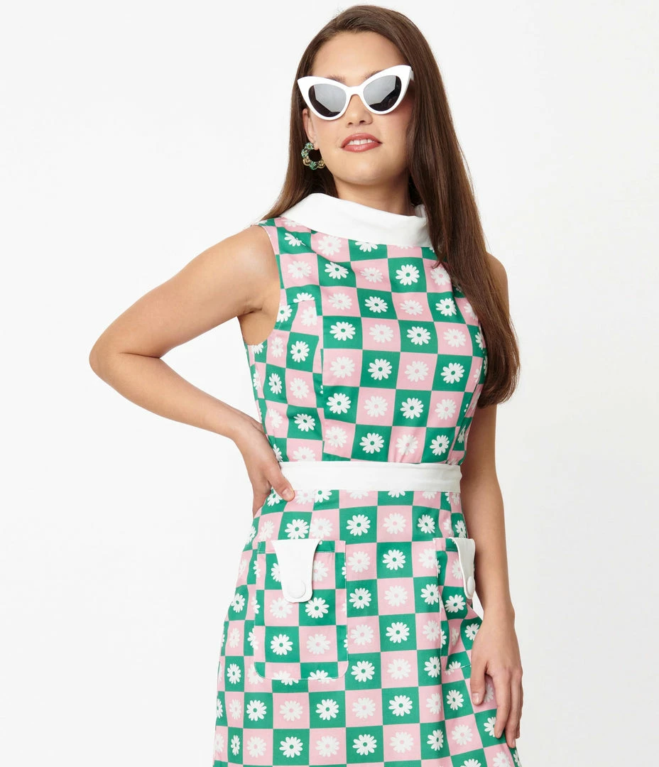 Cheapest ๐ Smak Parlour Green & Pink Checkerboard Daisy Print Mod Top Sale ๐