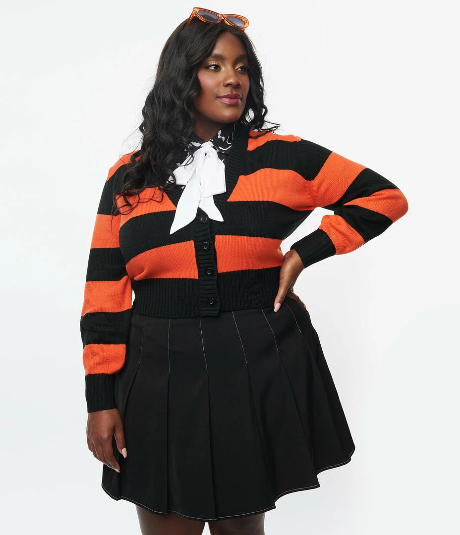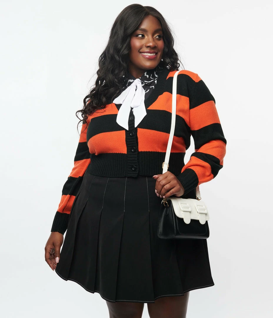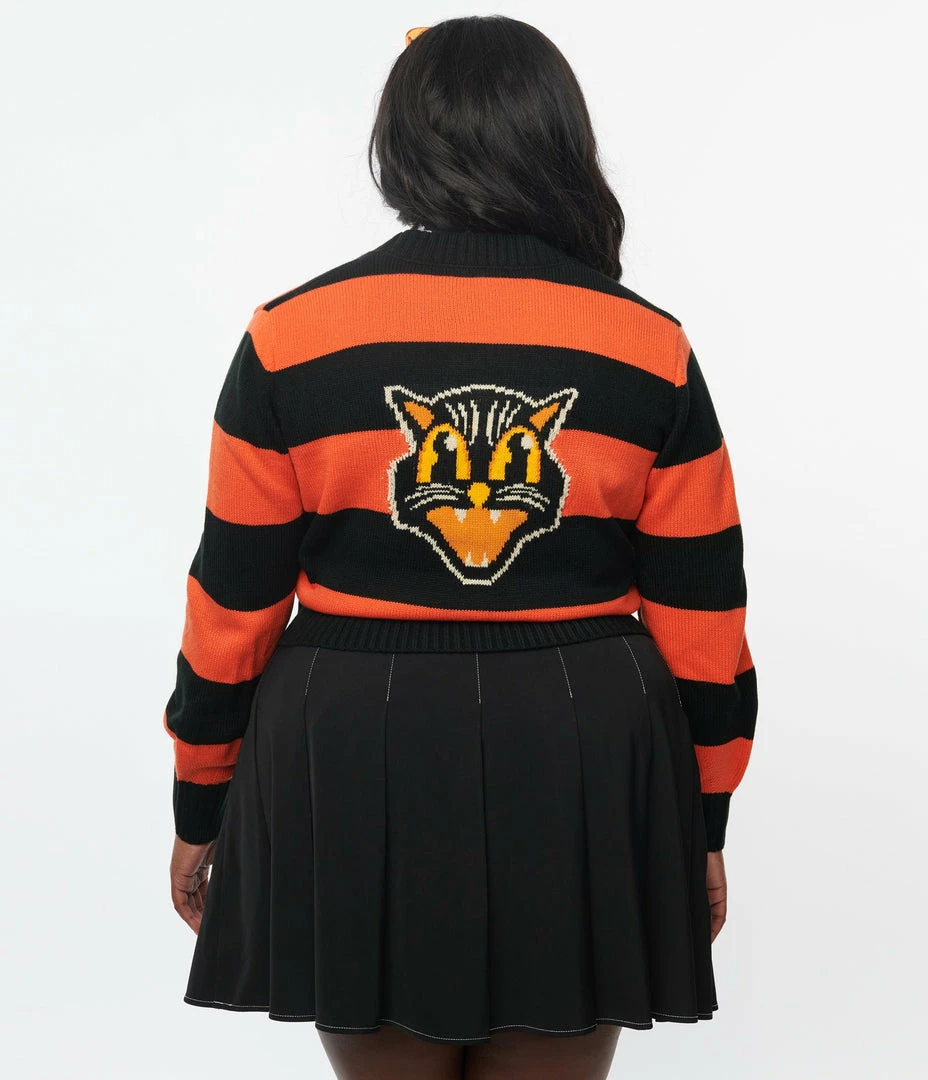 Brand new 😍 Smak Parlour Plus Size 1950s Orange & Black Striped Scaredy Cat Cardigan Sale ✨