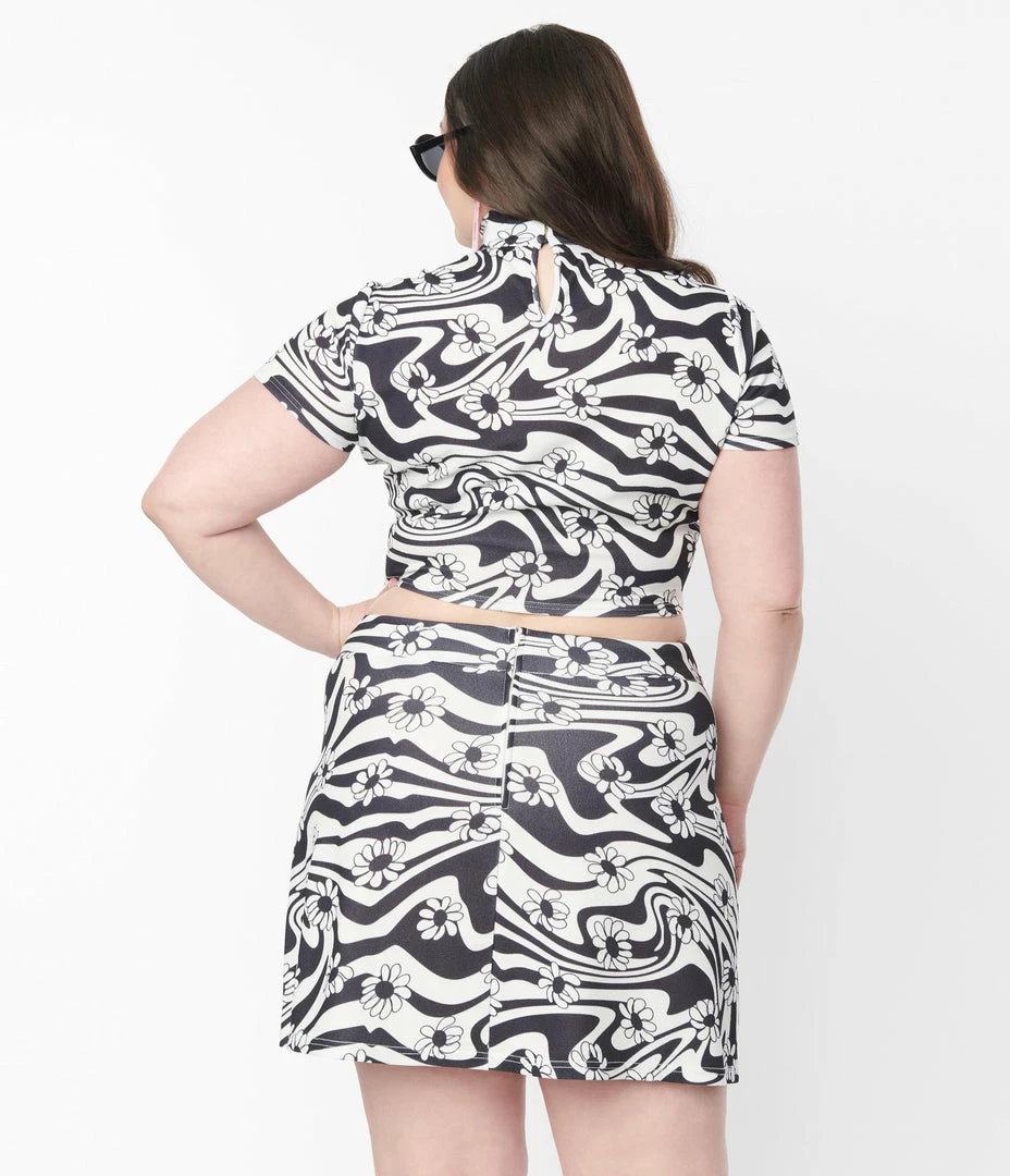 Discount ๐ Smak Parlour Plus Size Black & White Psychedelic Floral Crop Top โญ