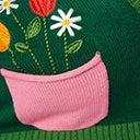 This cozy plus size piece is crafted in a soft green knit. The button front is framed with sweet floral embroidery and pink side pockets.