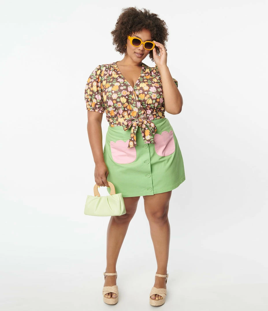 Top 10 π Smak Parlour Plus Size Green & Pink Tulip Match Game π Skirt π