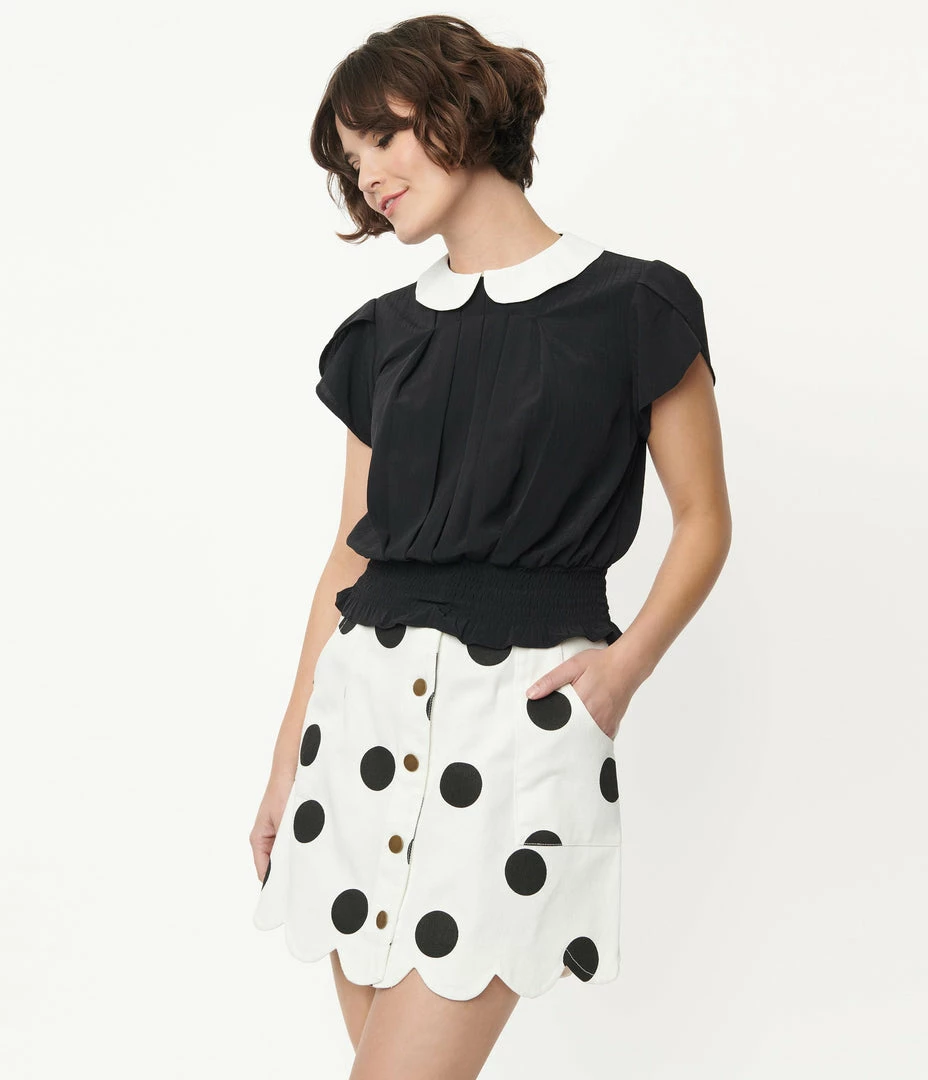 Discount π₯° Smak Parlour White & Black Polka Dot Campus Mini π Skirt π