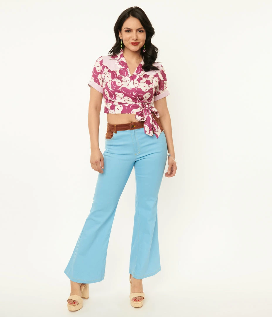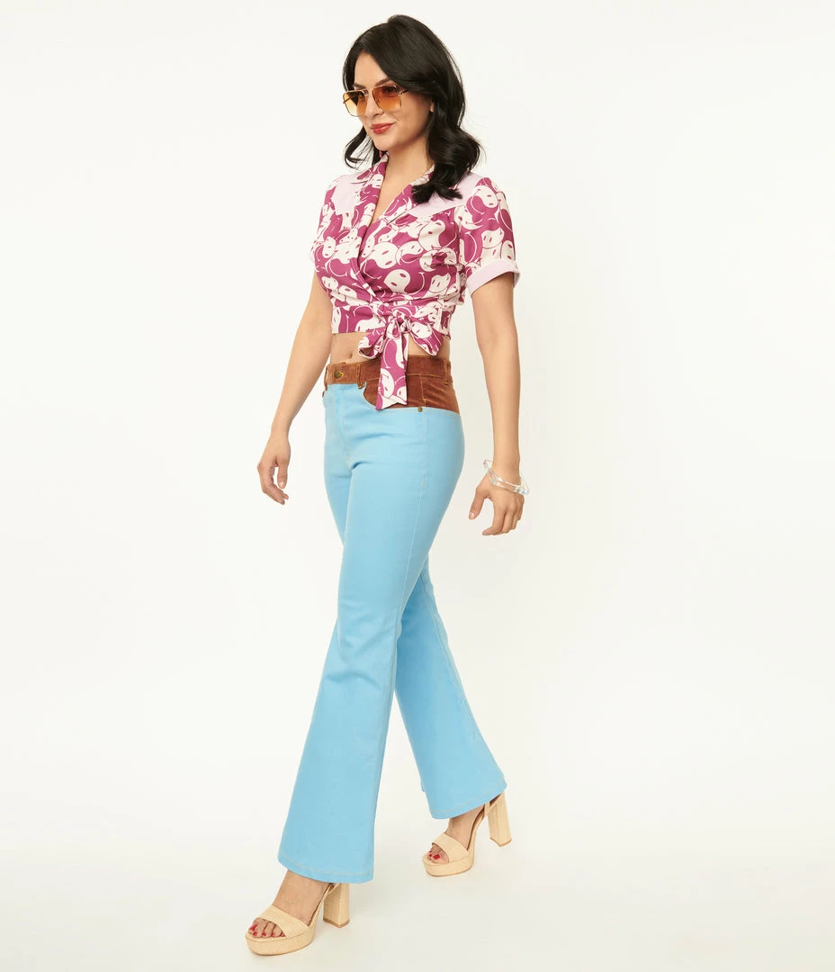 New 🥰 Smiley® X Unique Vintage Light Blue Denim Embroidered 👖 Jeans 🧨