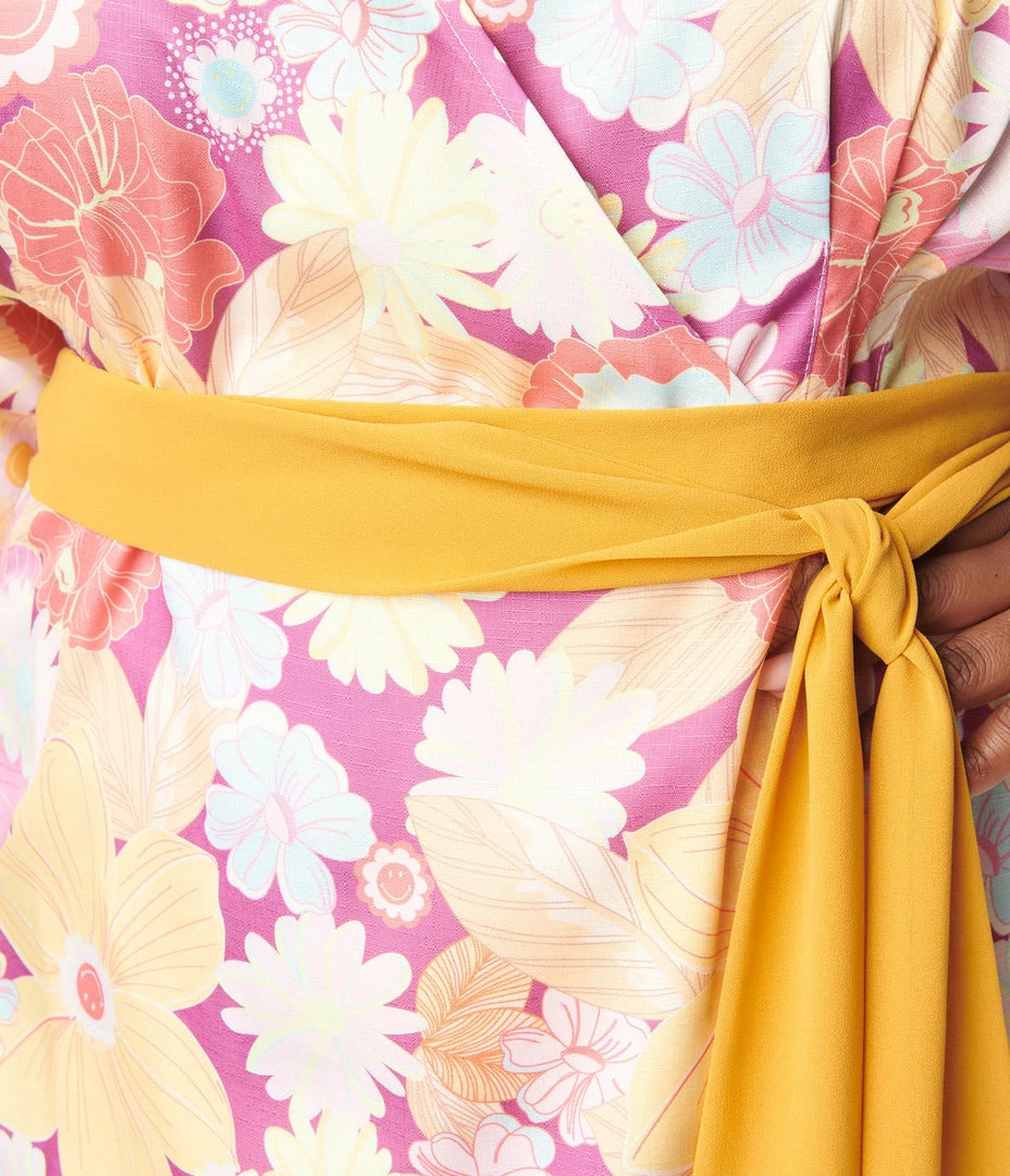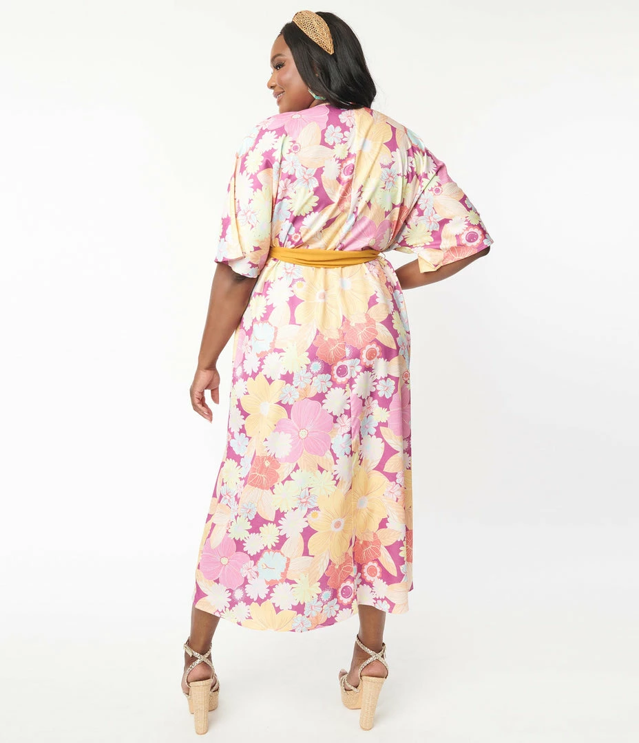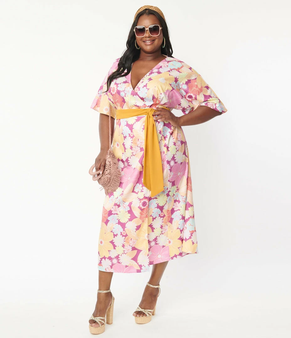 Best Pirce 👏 Smiley® X Unique Vintage Plus Size Purple Smiley® Florals Wrap Midi 👗 Dress 👍