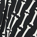 Shake your bones in this thrilling flare dress, crafted in soft brushed cotton knit that dances with white bones throughout a black backdrop. Outfitted with scoop neckline, long sleeves, and side pockets.