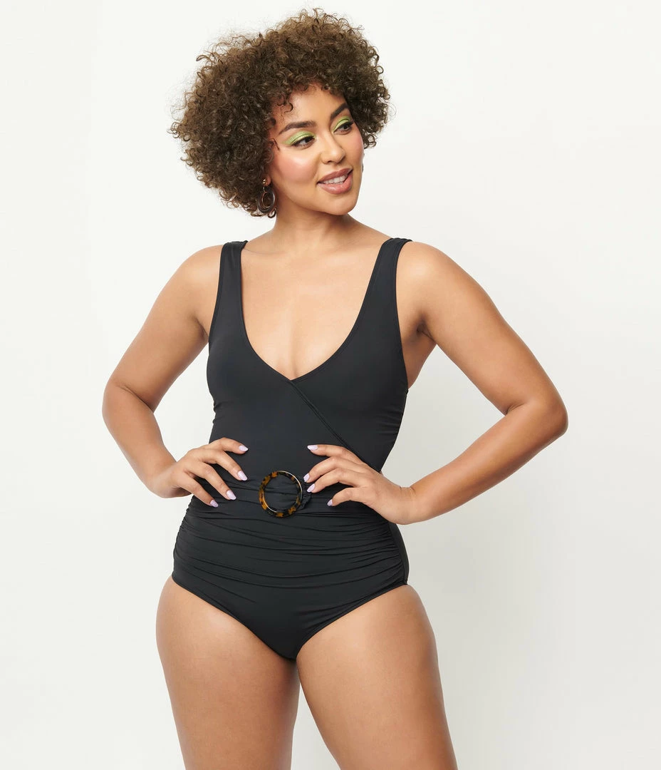 Best Pirce 👏 Swimwear Kingdom & State 1950s Black Belted One Piece 🩱 Swimsuit 🎉