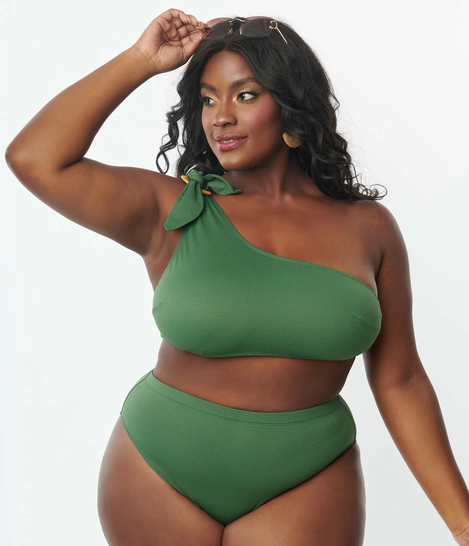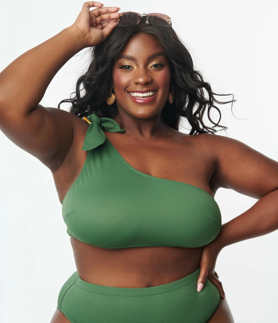 Best Pirce 👍 Swimwear Kingdom & State Plus Size Green Texture One Shoulder Swim Top 👍