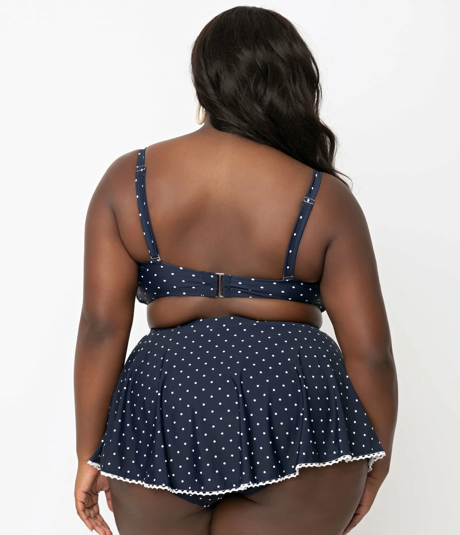 Discount 🥰 Swimwear Unique Vintage Plus Size Navy & White Pin Dot Rialto 👙 Bikini Top 👍