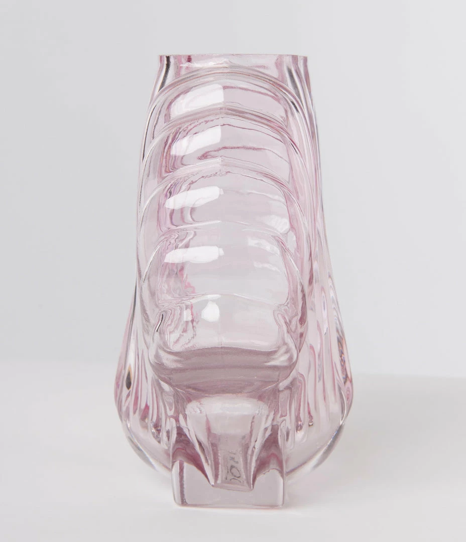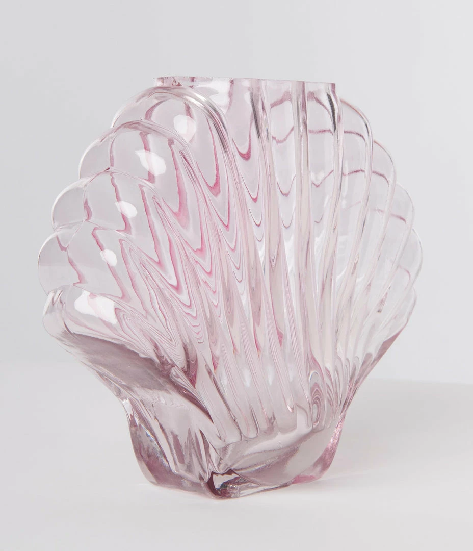 This beautiful vase is crafted in pink glass in the shape of a sea shell.